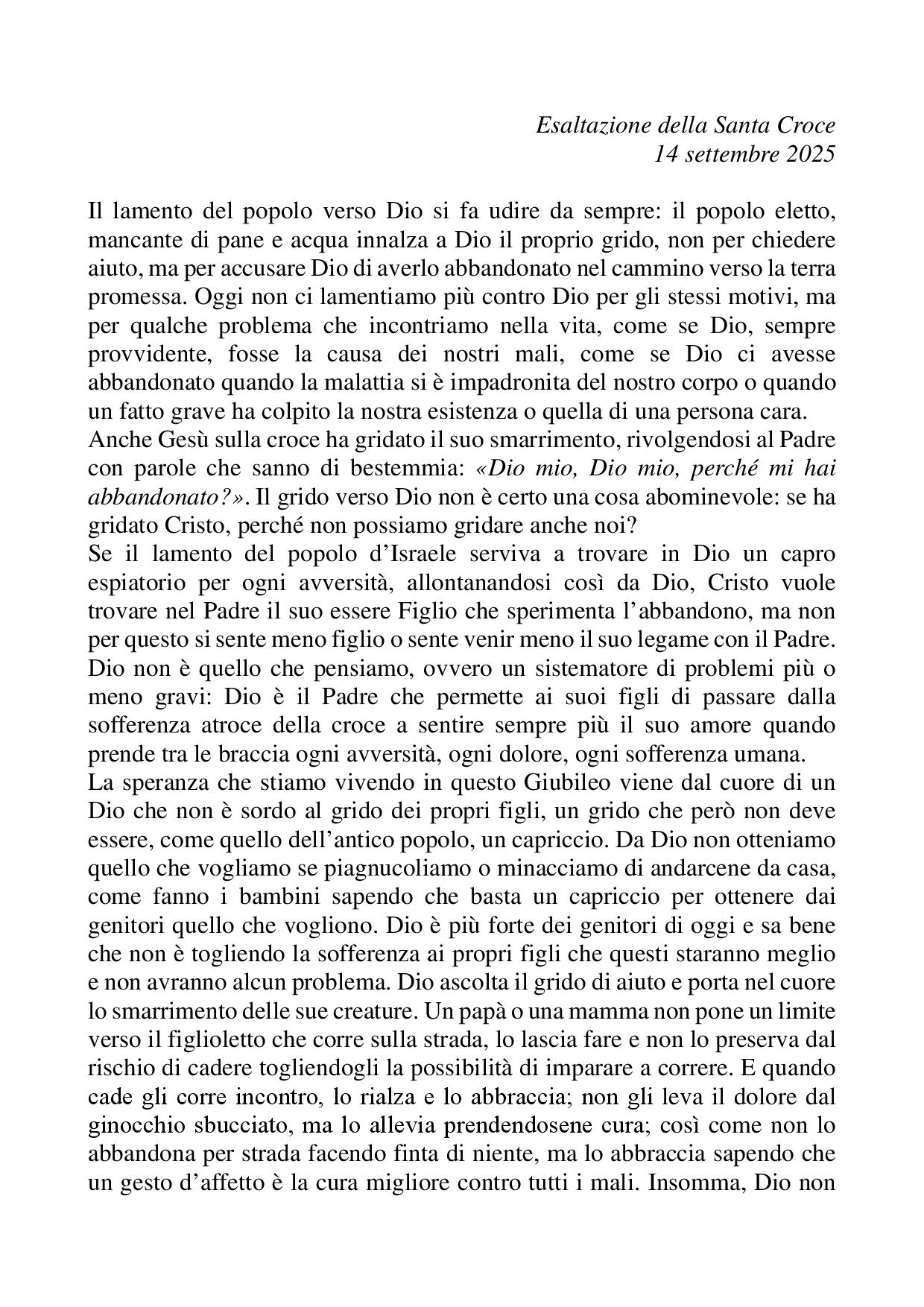 Omelia Esaltazione della Santa Croce - 14 settembre 2025
