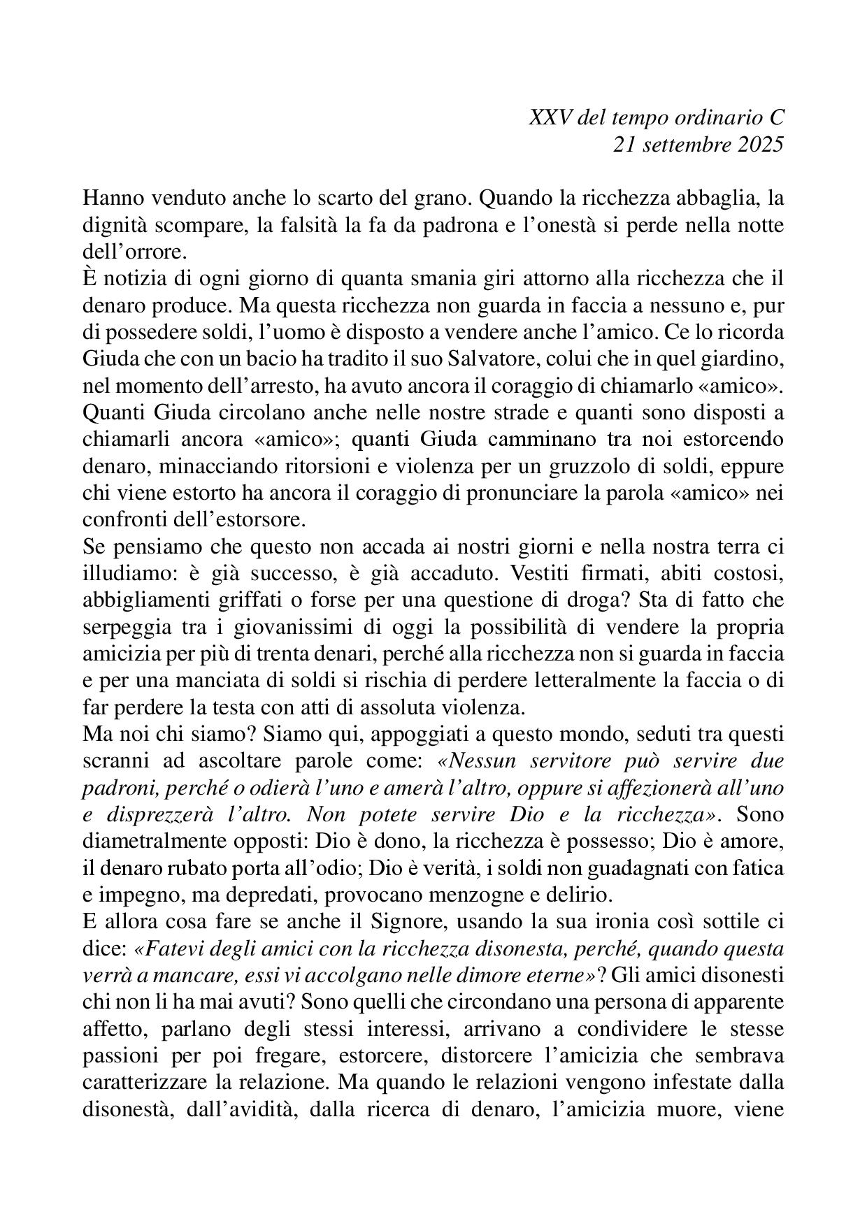 Omelia XXV del tempo ordinario C - 21 settembre 2025