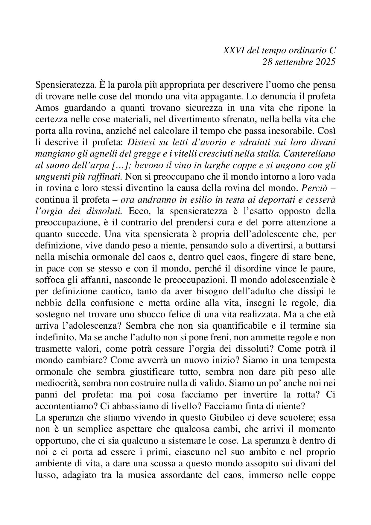 Omelia XXVI del tempo ordinario C - 28 settembre 2025