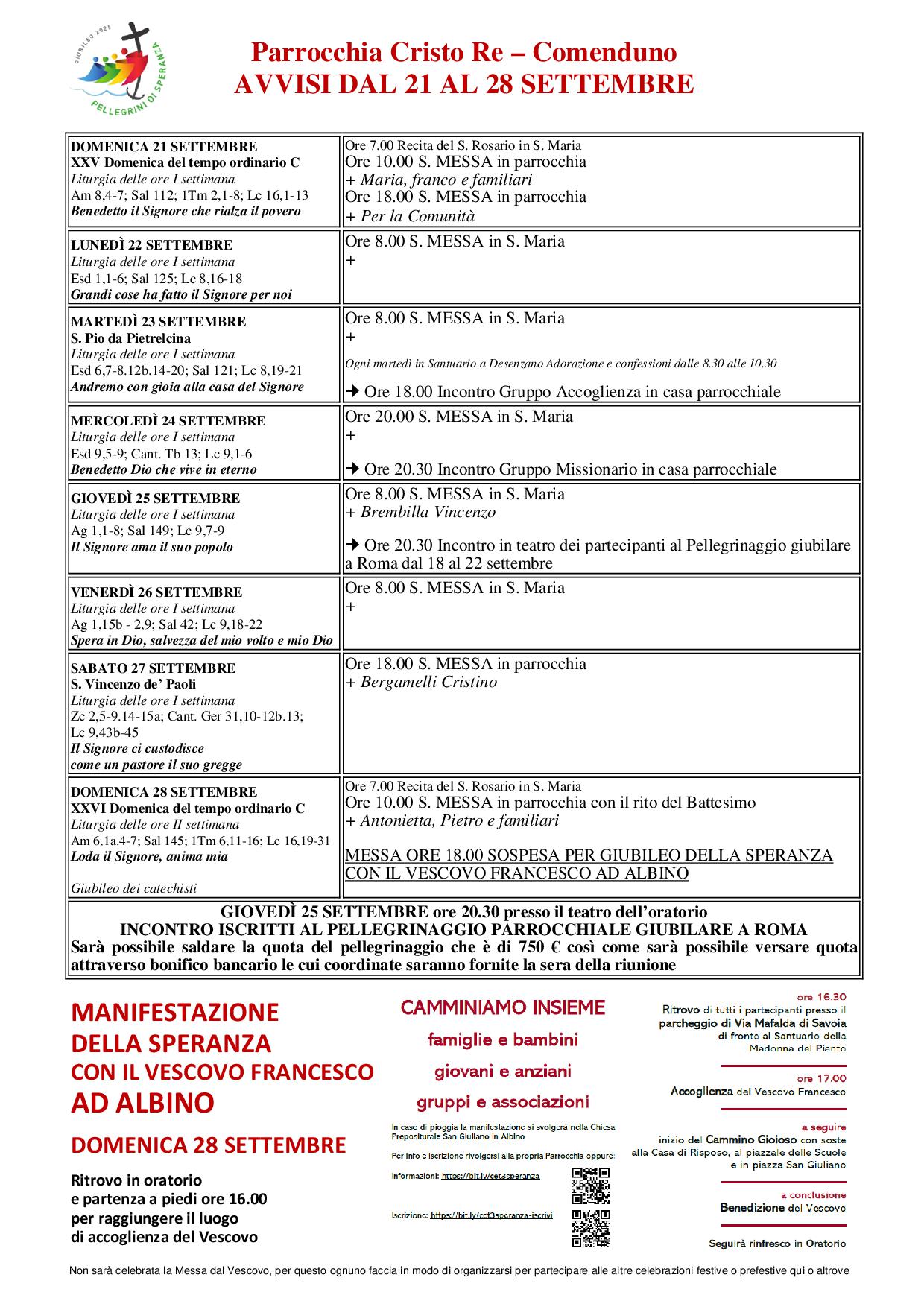 AVVISI DAL 28 settembre al 05 ottobre 2025