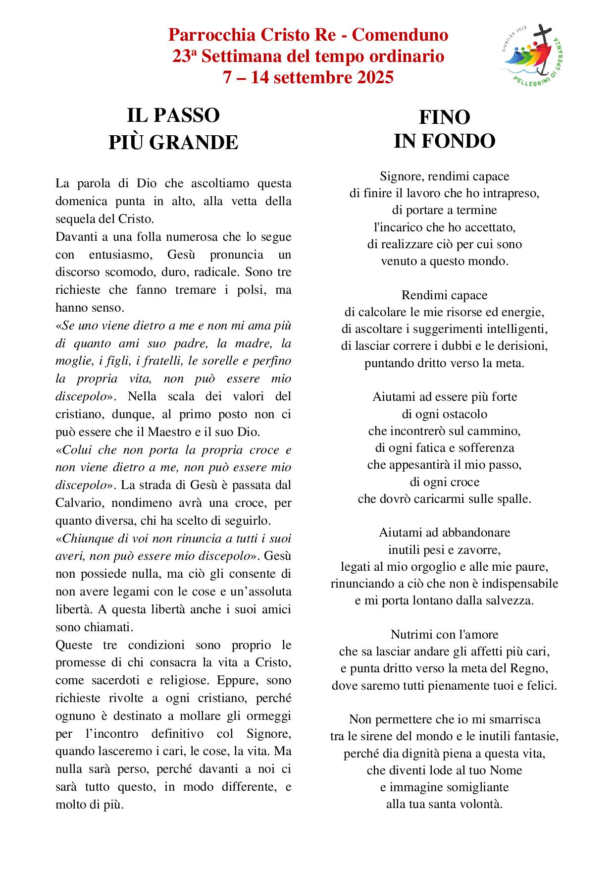 AVVISI DAL 07 al 14 settembre 2025