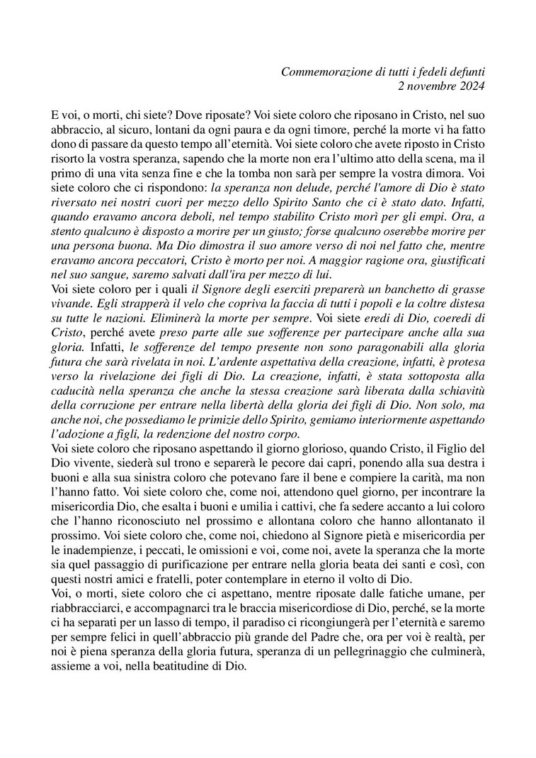 Omelia Commemorazione di tutti i fedeli defunti 2 novembre 2024