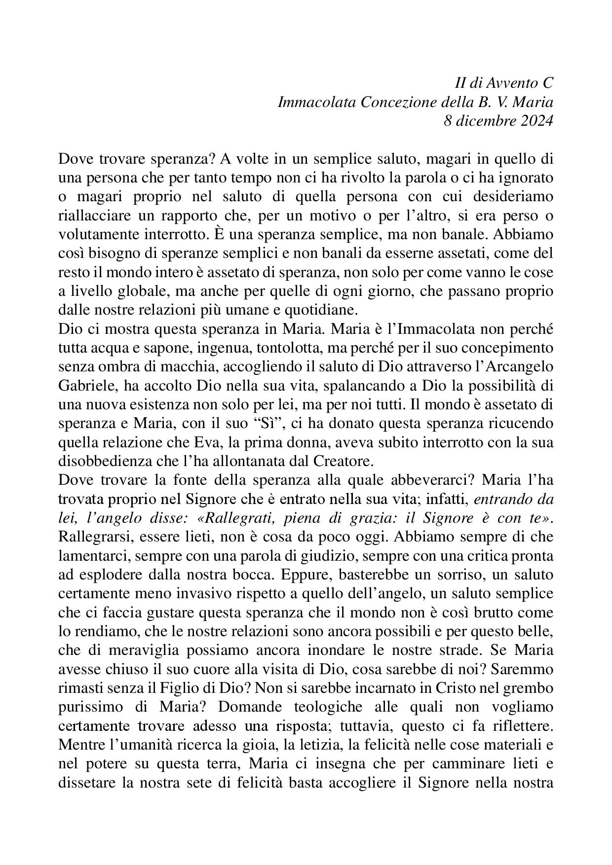 Omelia Immacolata Concezione della Beata Vergine Maria - 8 dicembre 2024