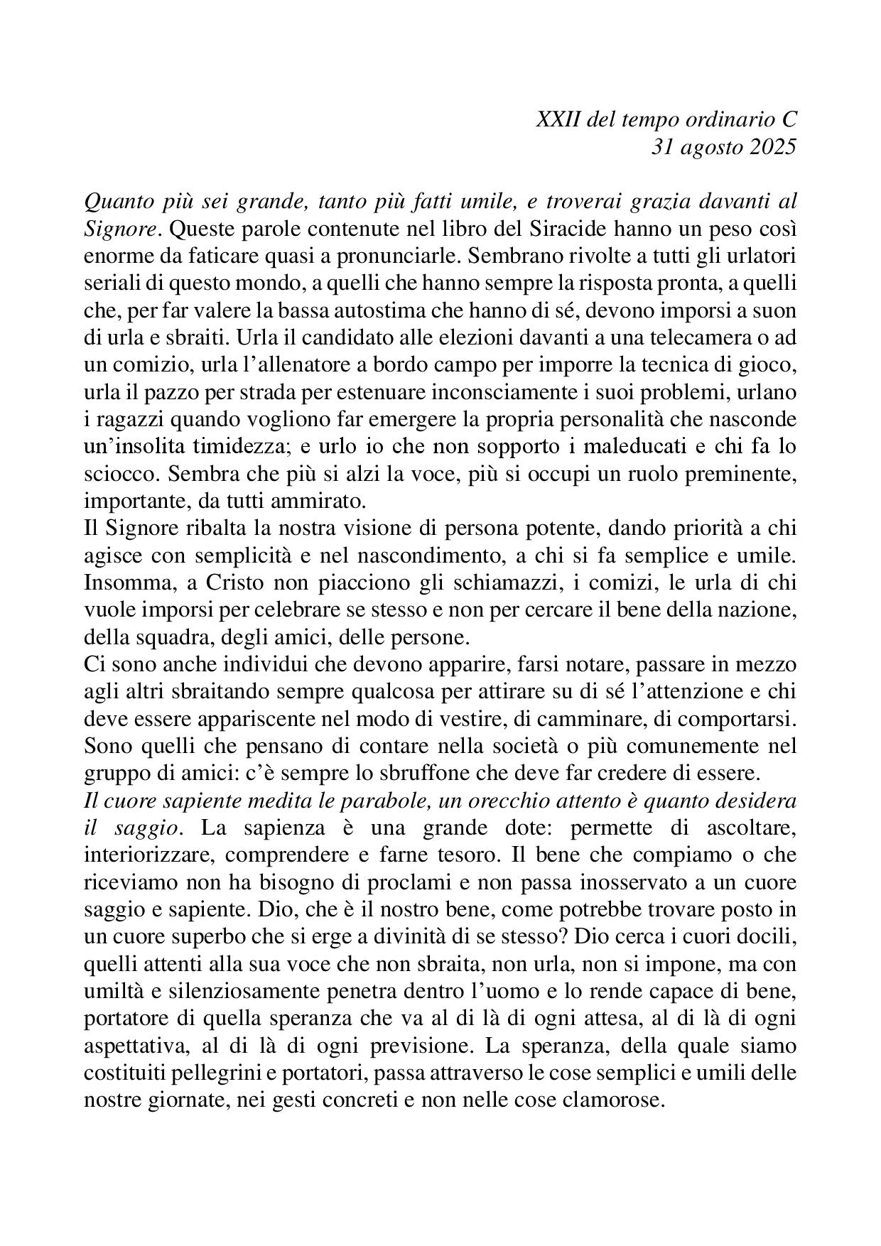 Omelia XXII del tempo ordinario C - 31 agosto 2025