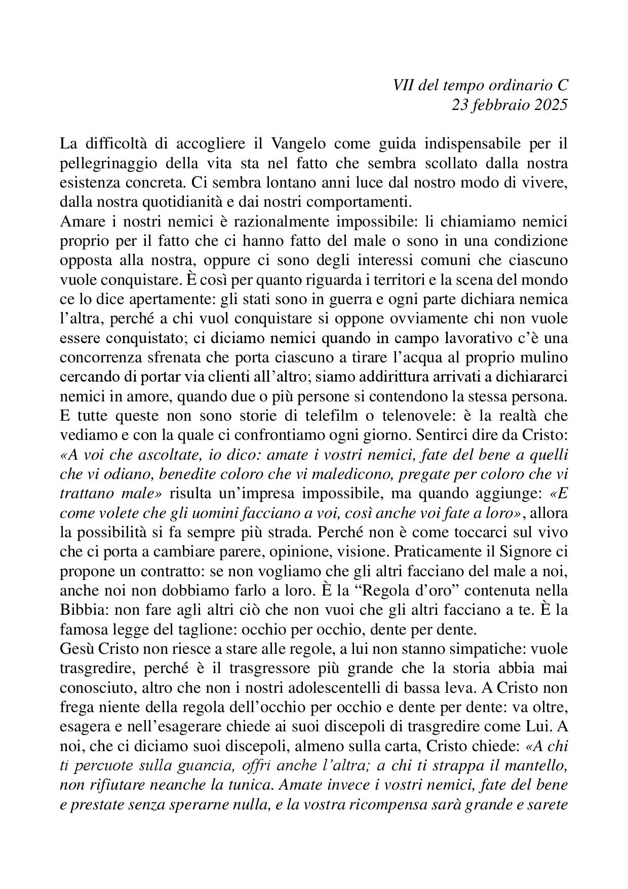 Omelia VII del tempo ordinario C - 23 febbraio 2025
