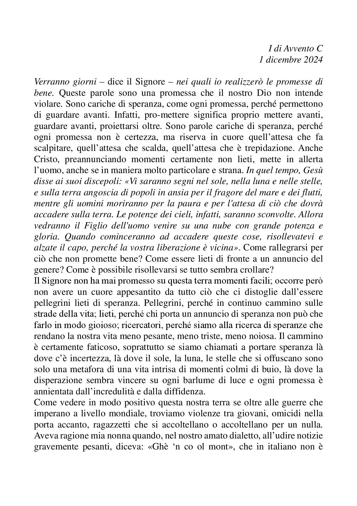 Omelia I di Avvento C 1° dicembre 2024