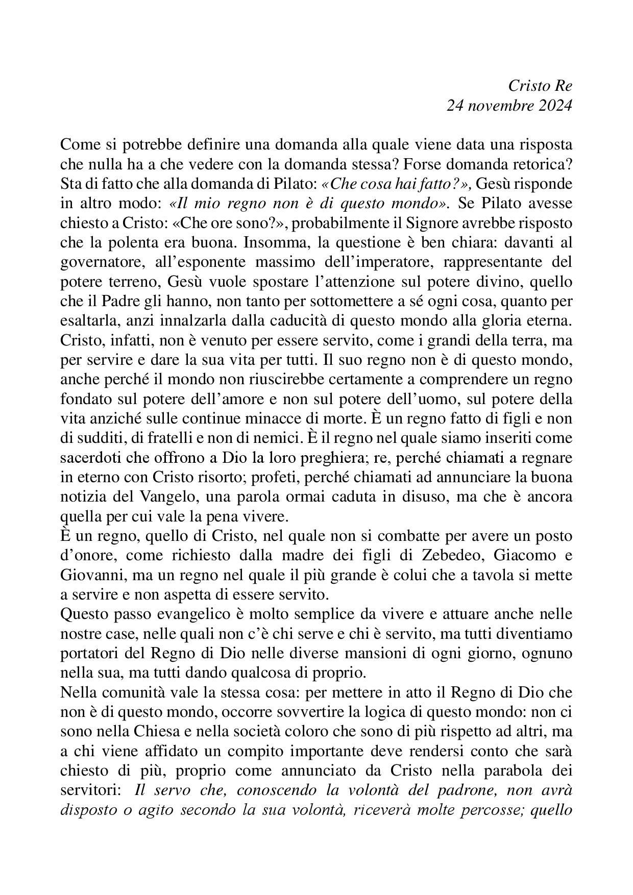 Omelia Cristo Re B 24 novembre 2024
