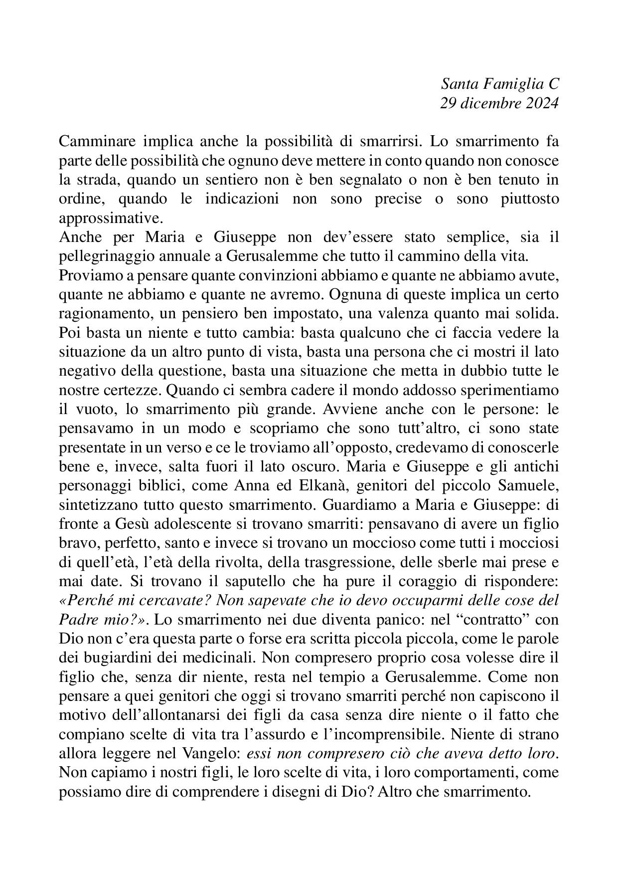 Omelia Santa Famiglia C - 29 dicembre 2024