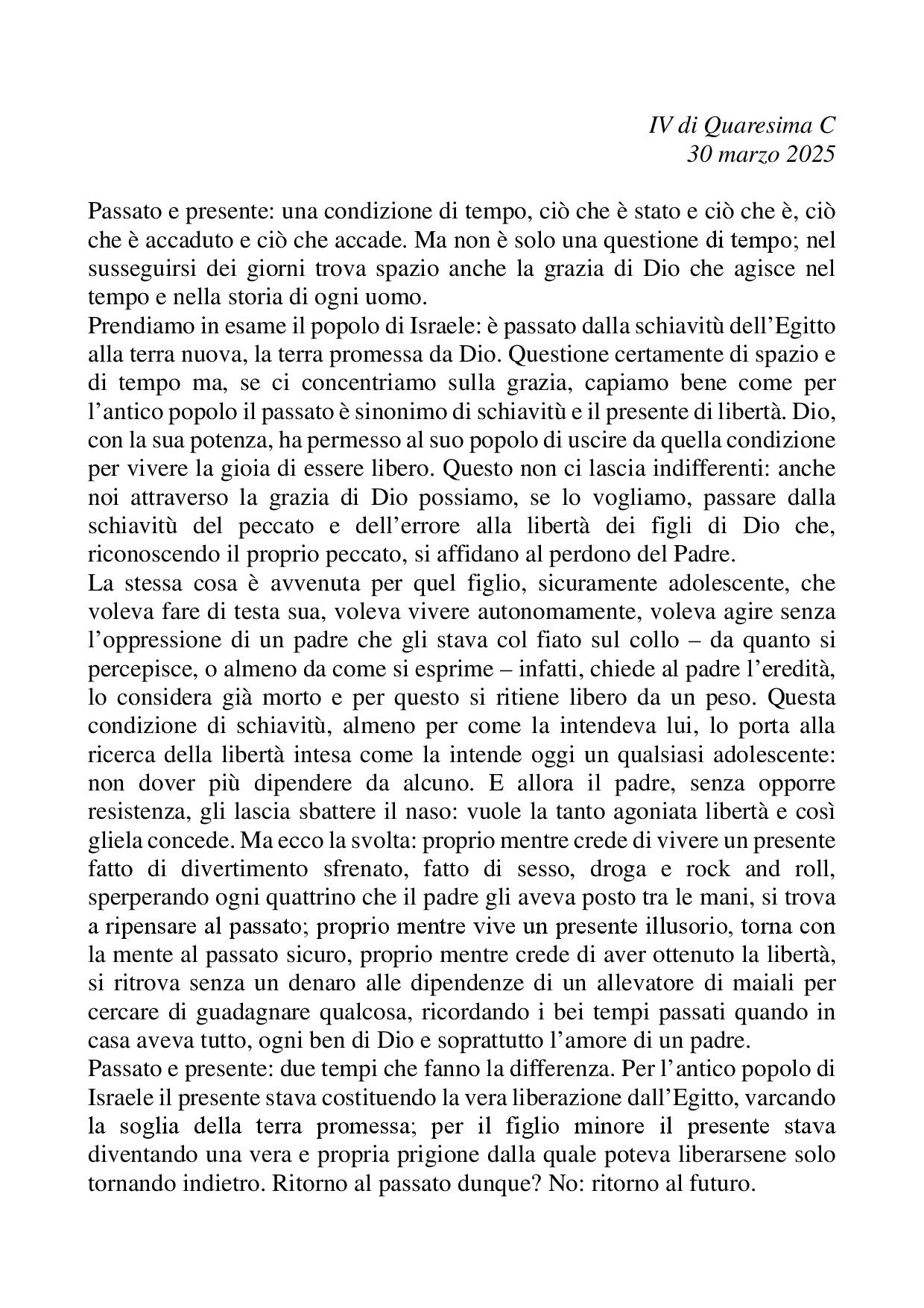 Omelia IV di Quaresima C - 30 marzo 2025