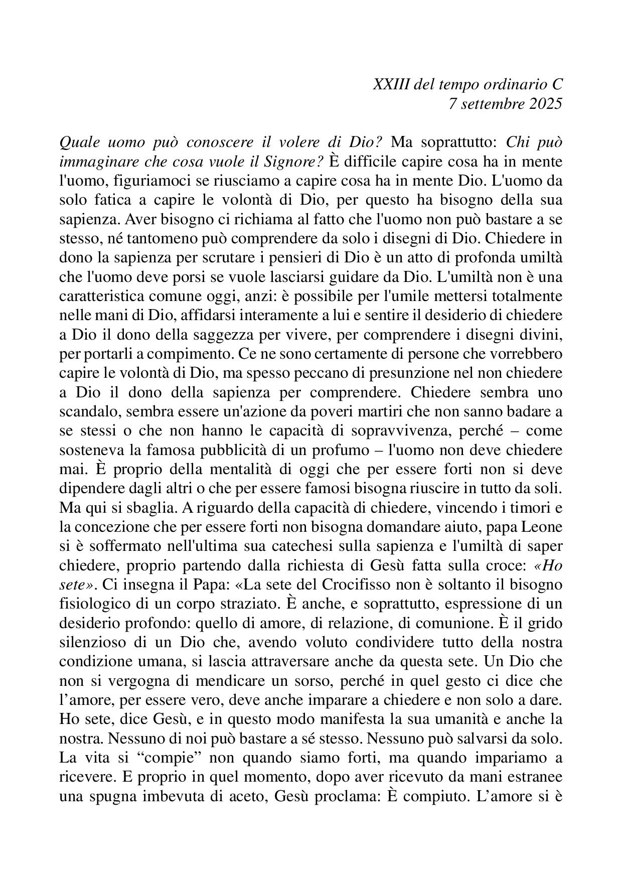 Omelia XXIII del tempo ordinario C - 07 settembre 2025