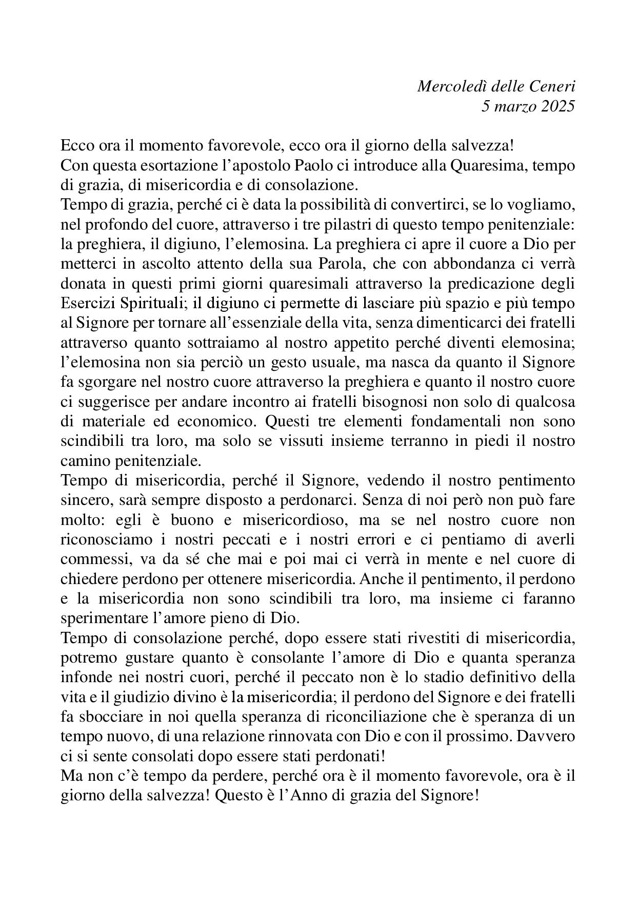 Omelia Mercoledì delle Ceneri - 05 marzo 2025