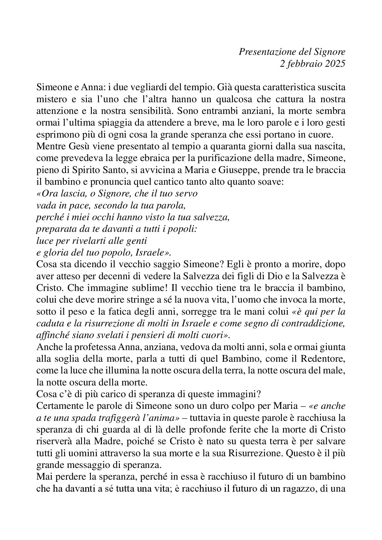 Omelia Presentazione del Signore - 02 febbraio 2025