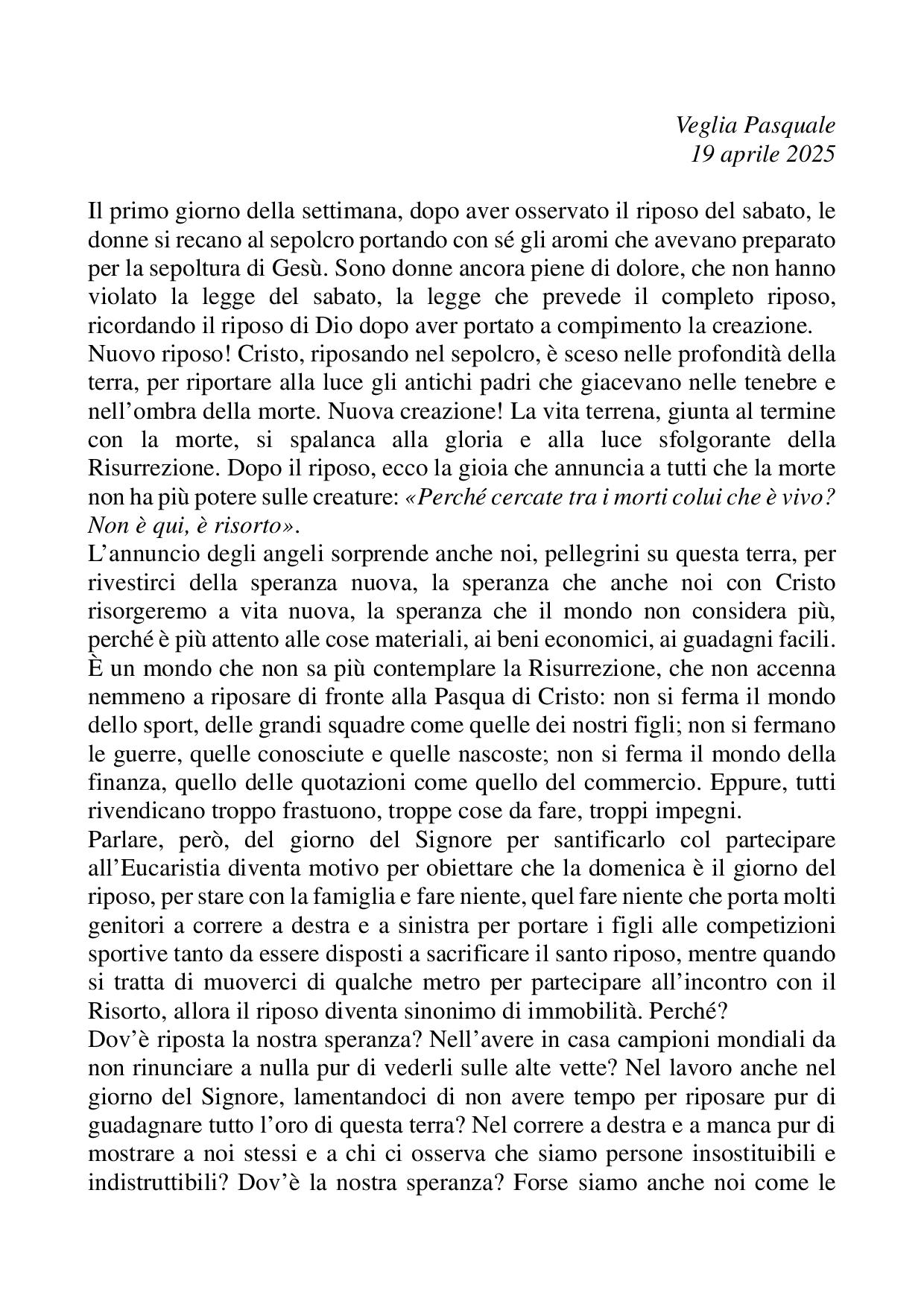 Omelia Veglia Pasquale - 19 aprile 2025