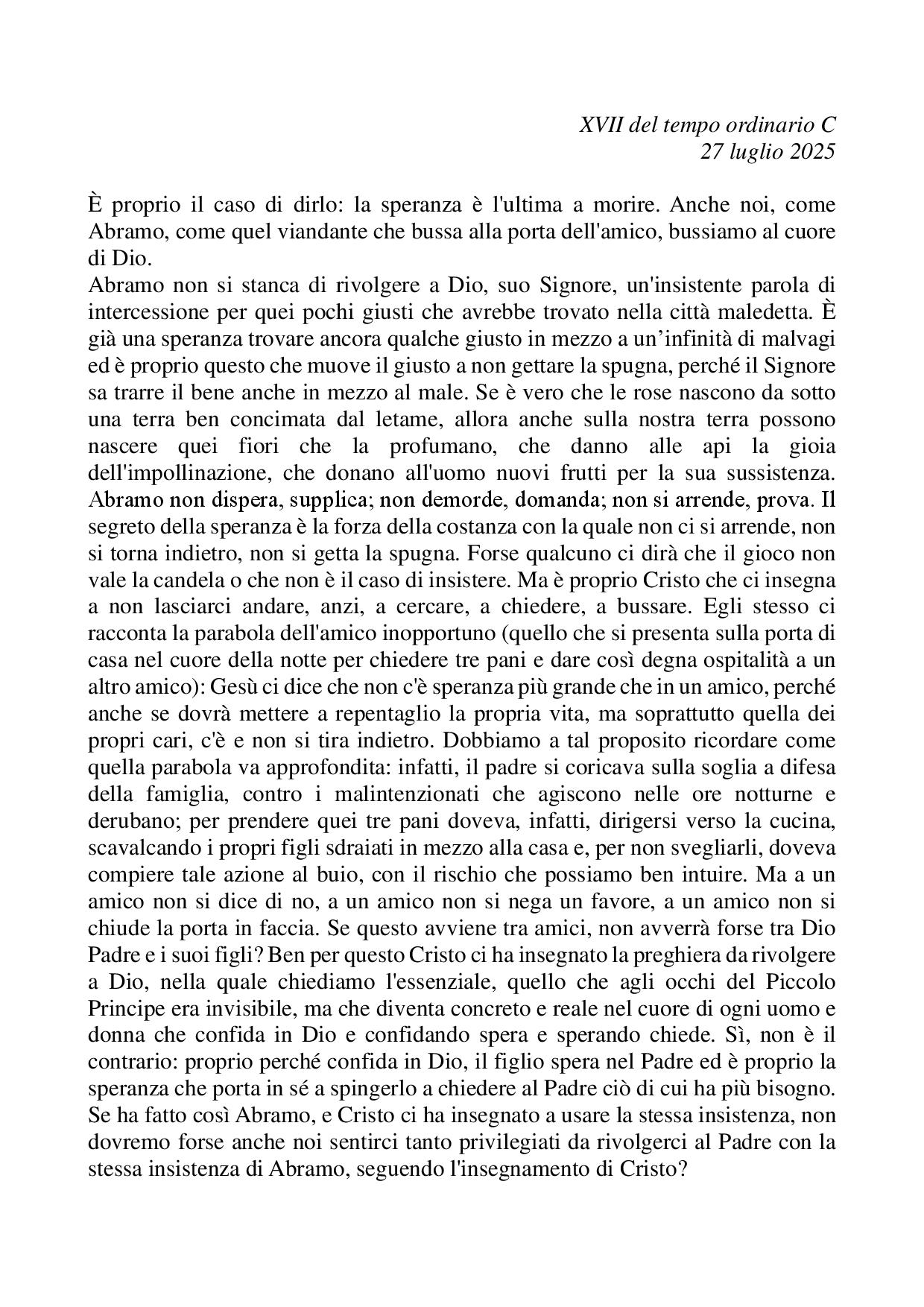 Omelia XVII del tempo ordinario C - 27 luglio 2025