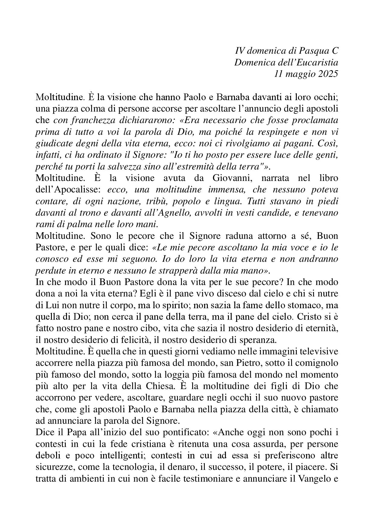 Omelia IV di Pasqua C - 11 maggio 2025