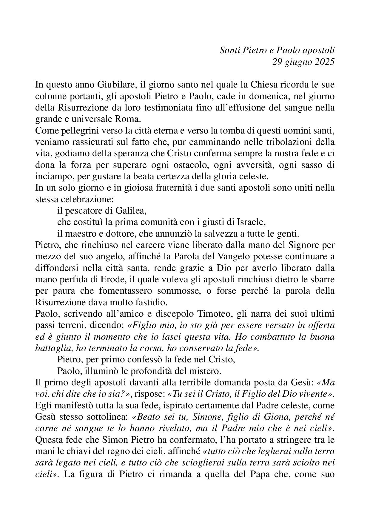 Omelia Santi Pietro e Paolo - 29 giugno 2025