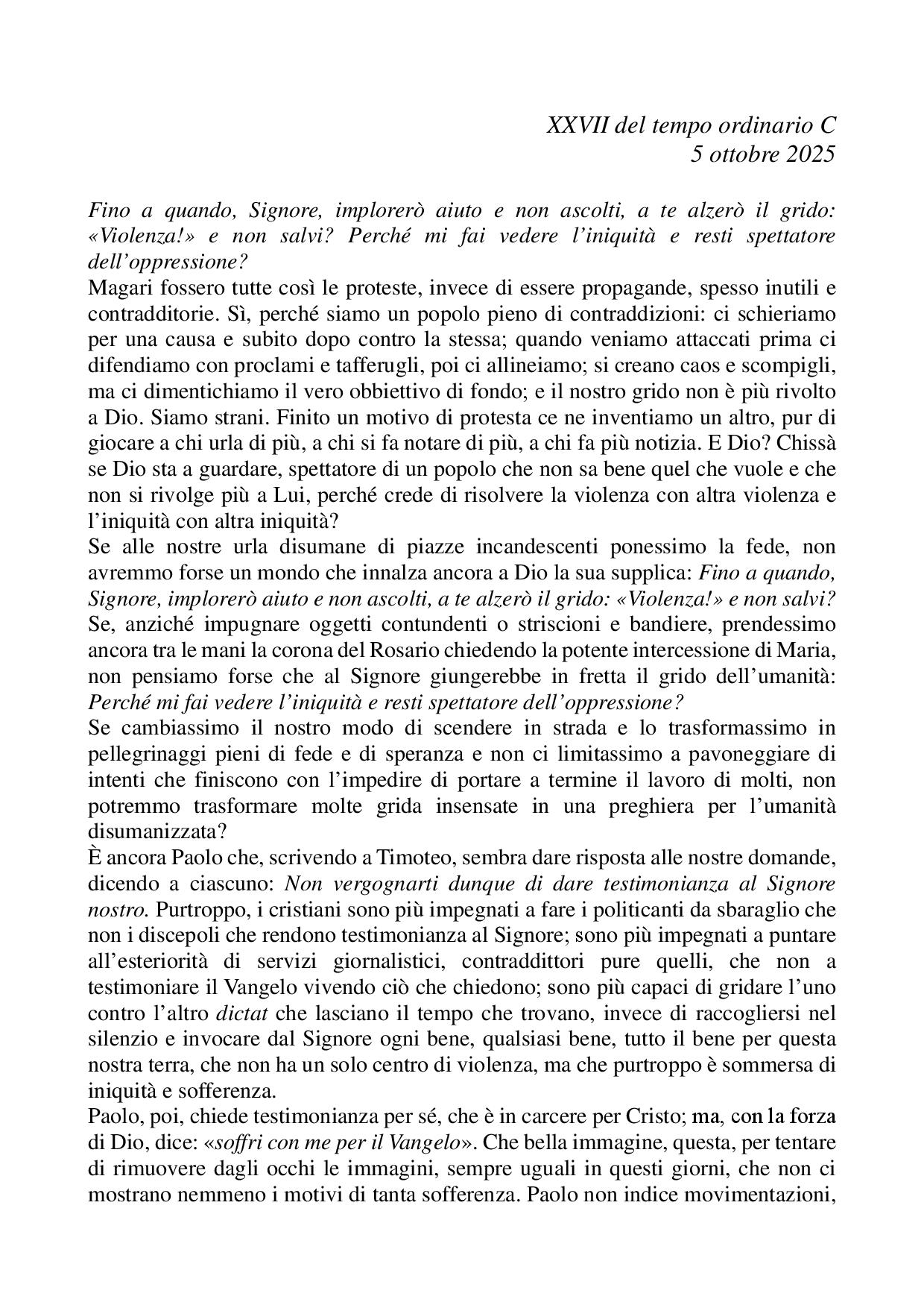Omelia XXVII del tempo ordinario C - 05 ottobre 2025