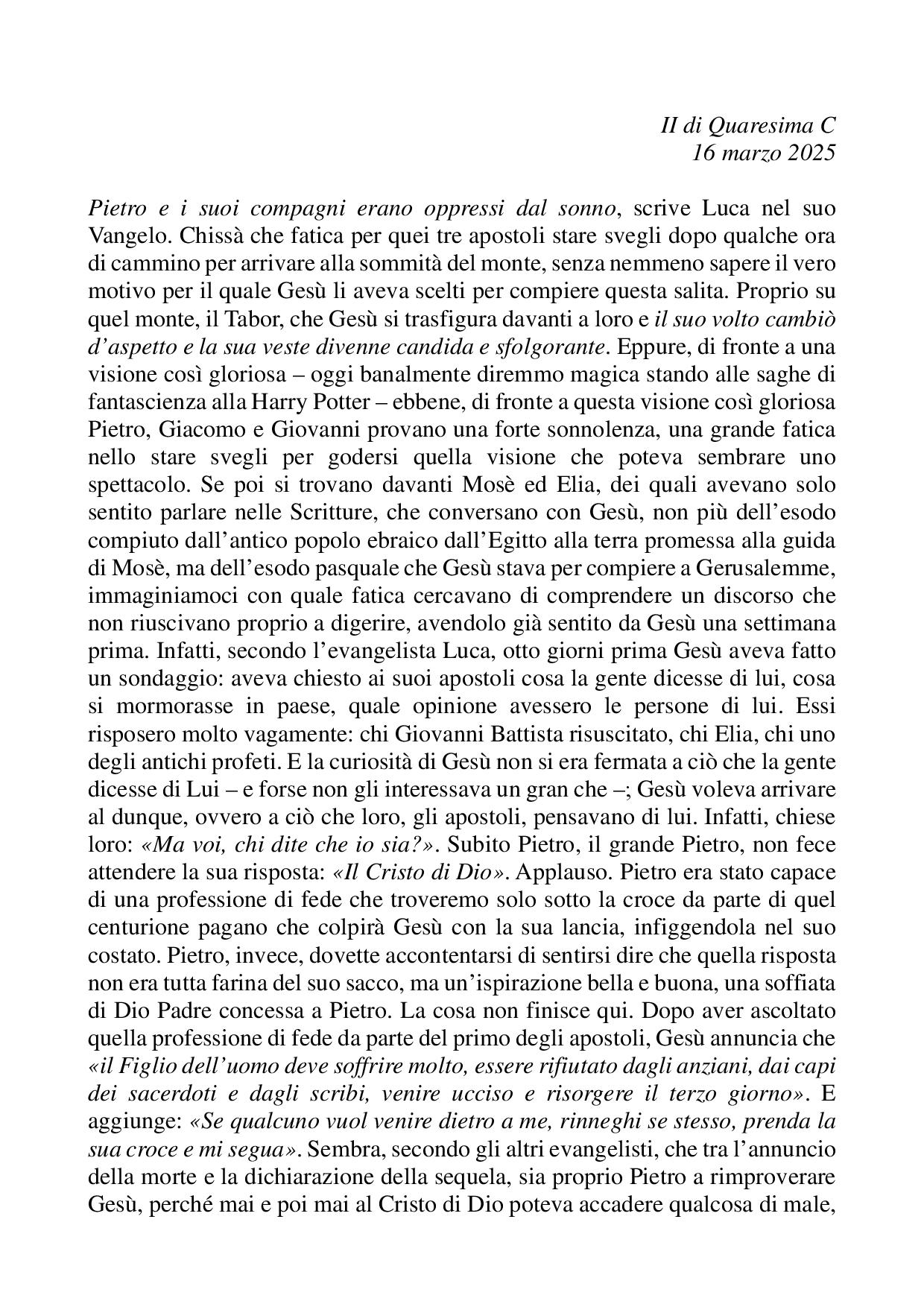 Omelia II di Quaresima C - 16 marzo 2025