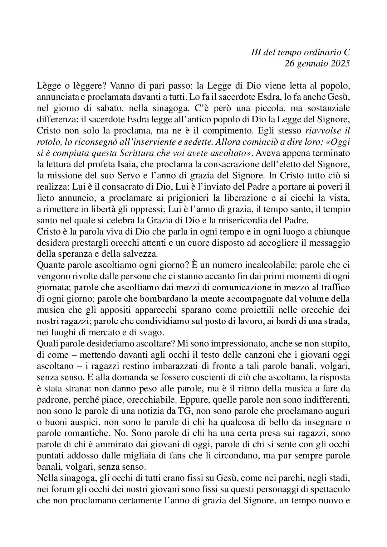 Omelia III del tempo ordinario C - 26 gennaio 2025