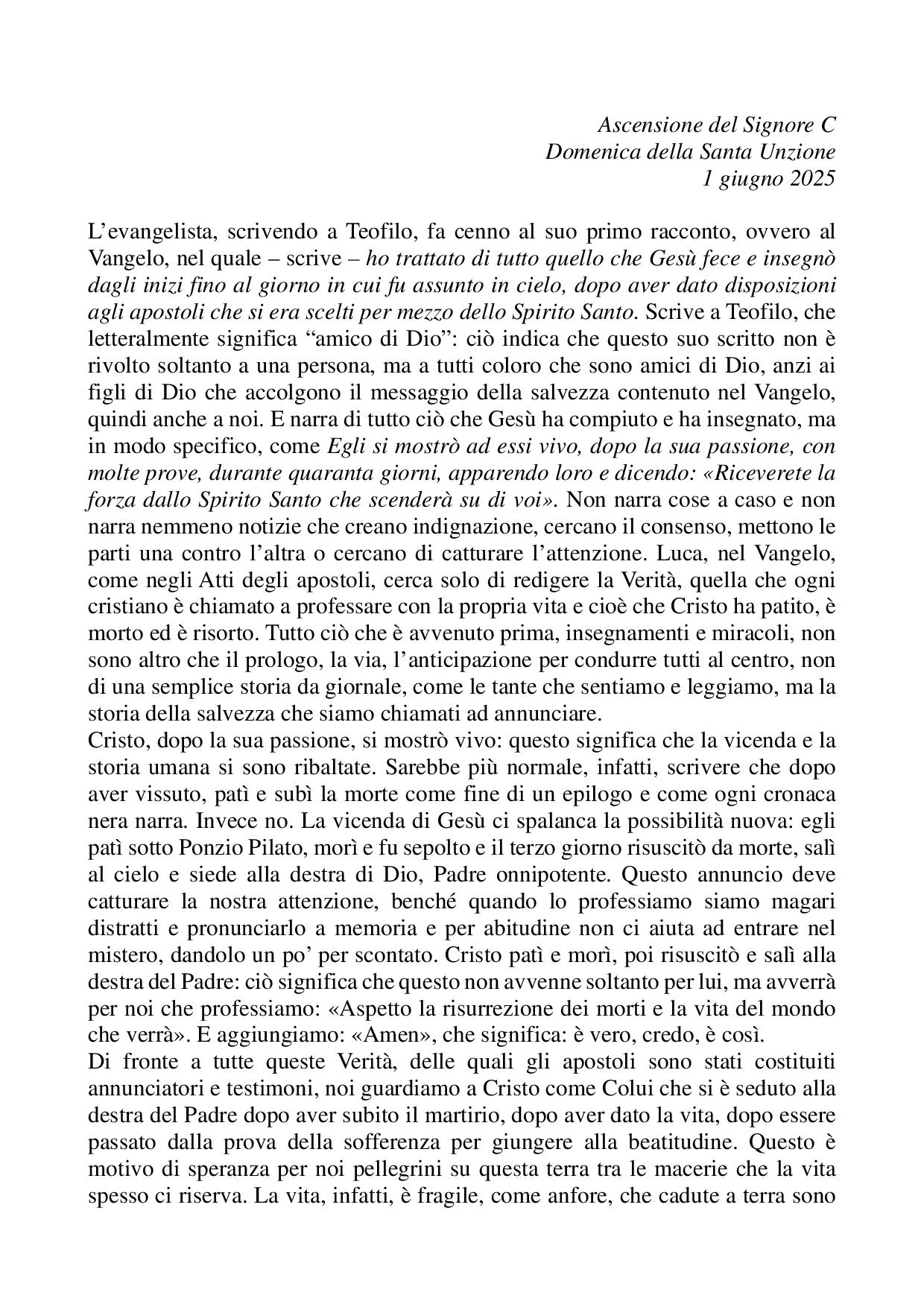 Omelia Ascensione del Signore C - 1° giugno 2025