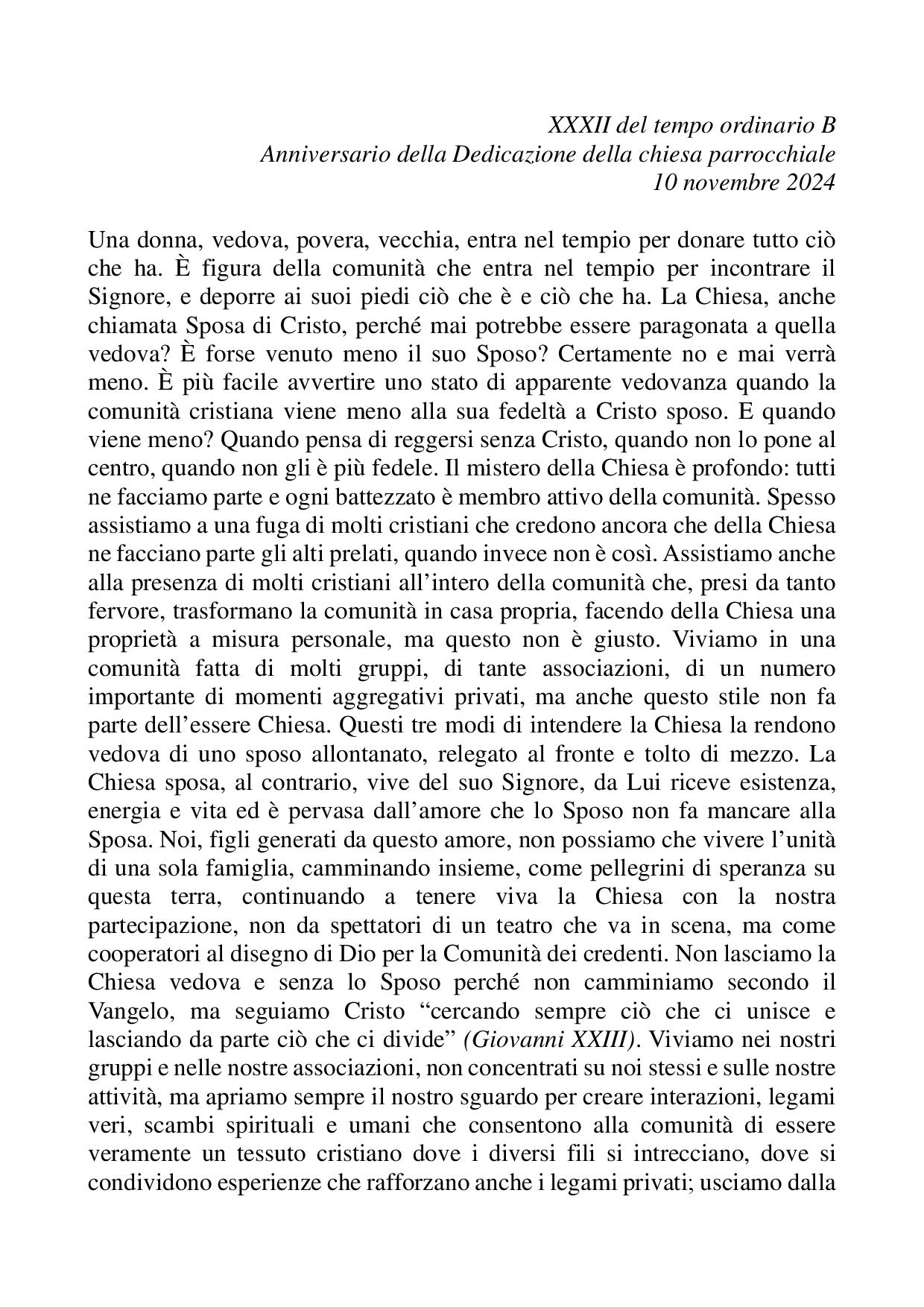 Omelia XXXII del tempo ordinario B 10 novembre 2024 - Dedicazione della chiesa