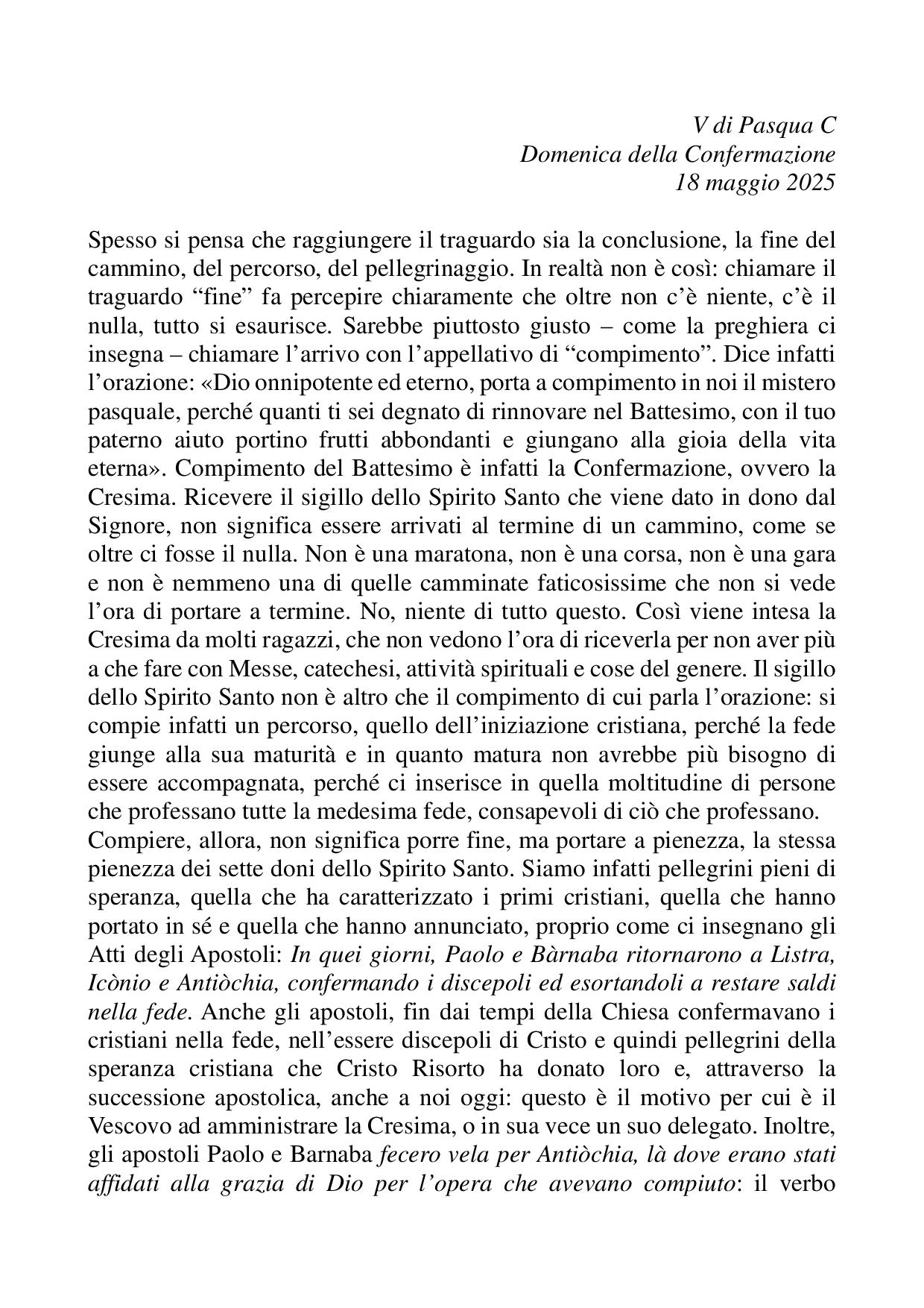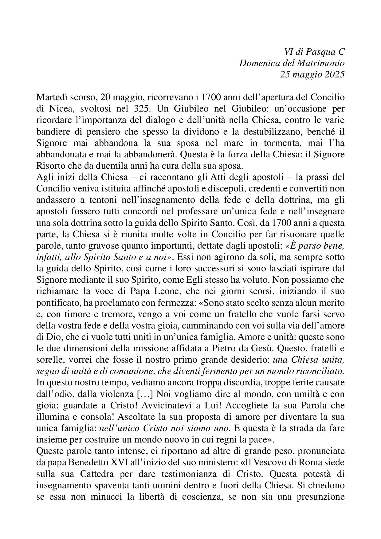 Omelia VI di Pasqua C - 25 maggio 2025
