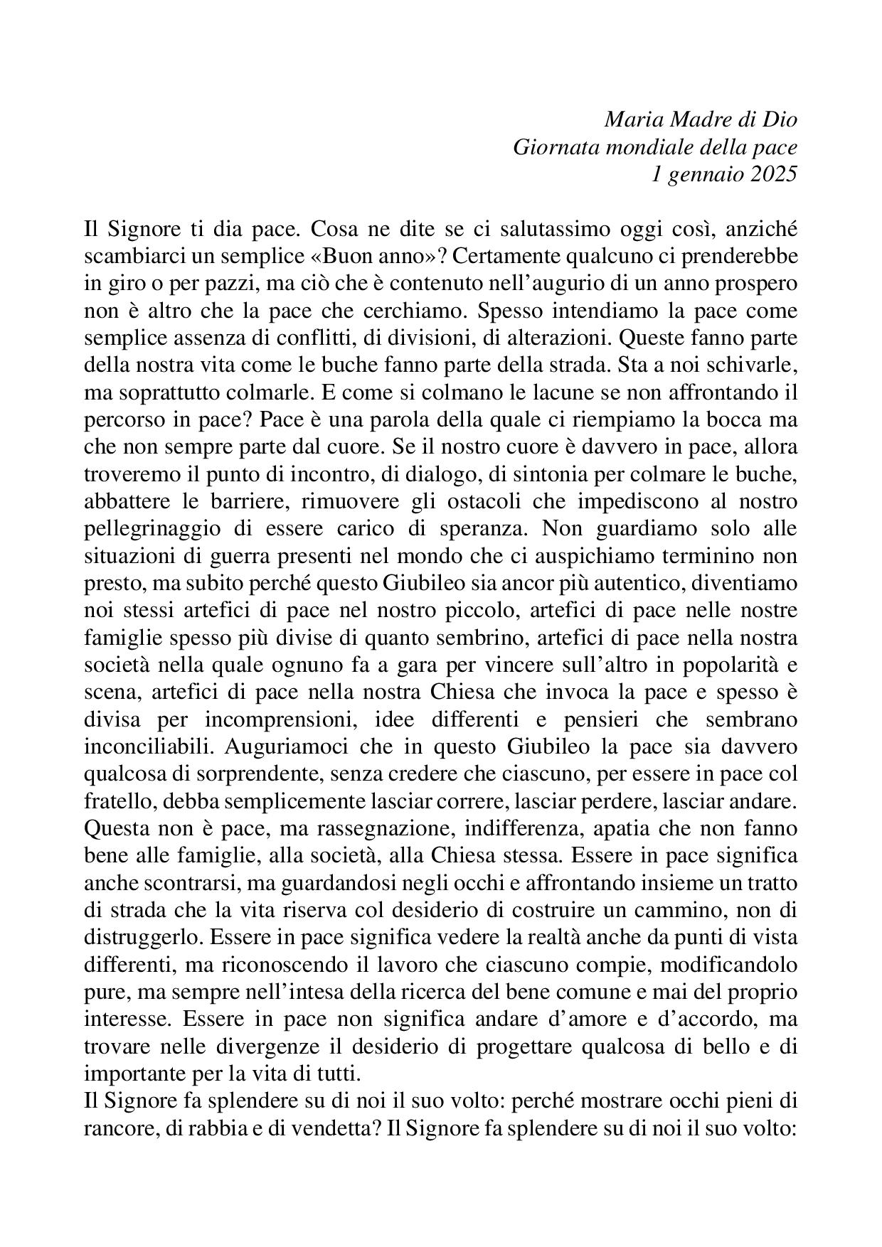 Omelia Maria Madre di Dio - 1 gennaio 2025