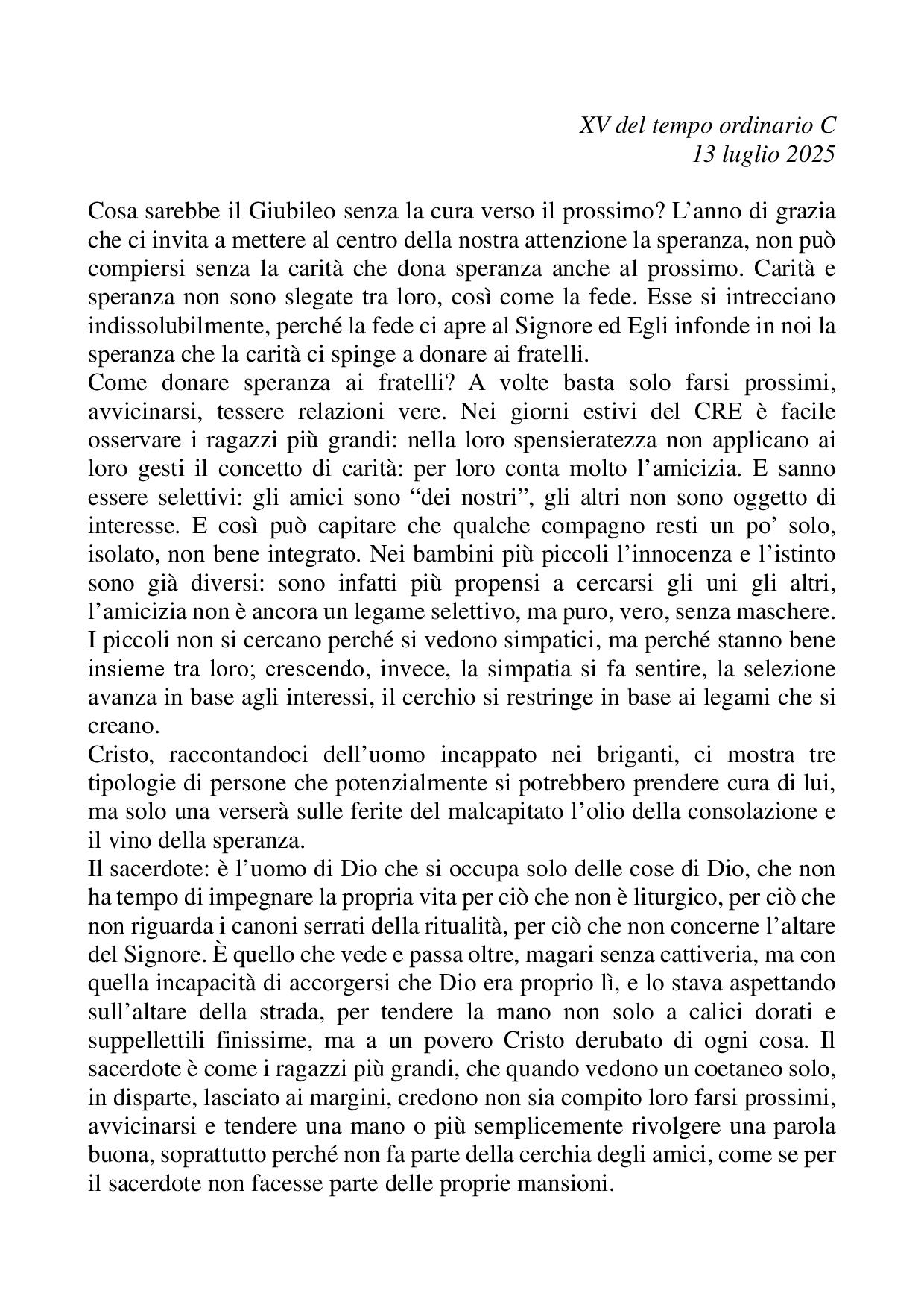 Omelia XV del tempo ordinario C - 13 luglio 2025
