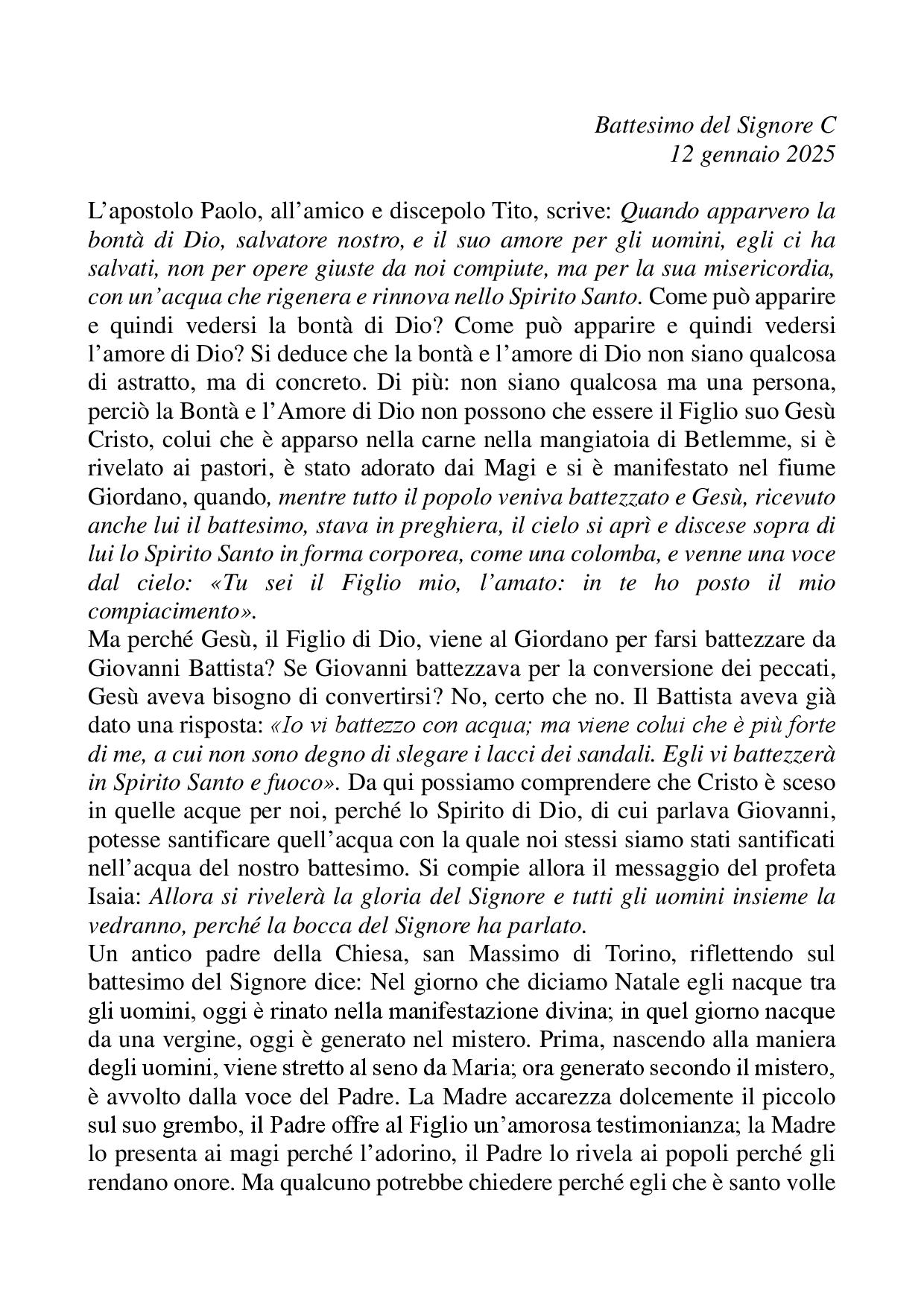 Omelia Battesimo del Signore C - 12 gennaio 2025