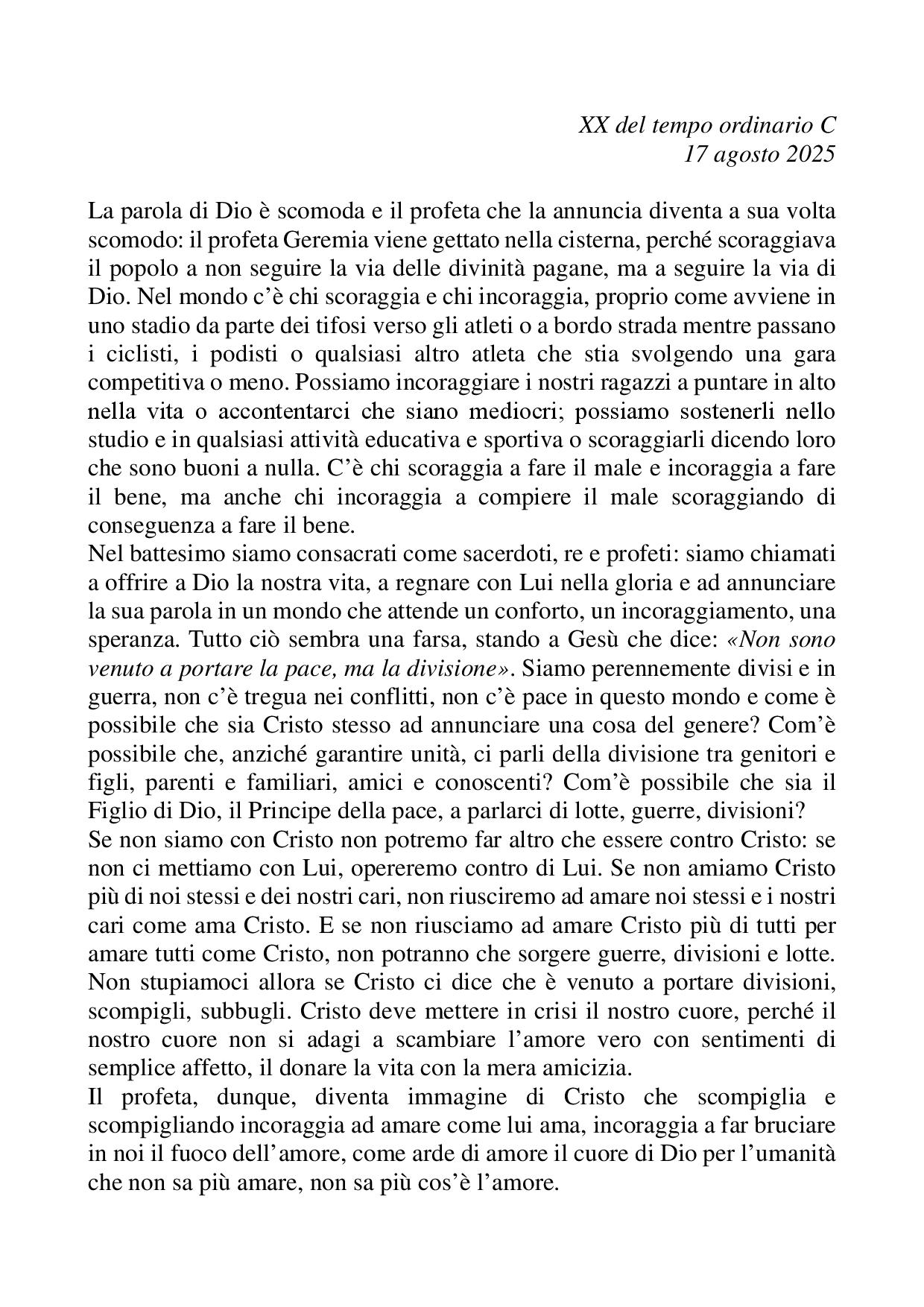Omelia XX del tempo ordinario C - 17 agosto 2025