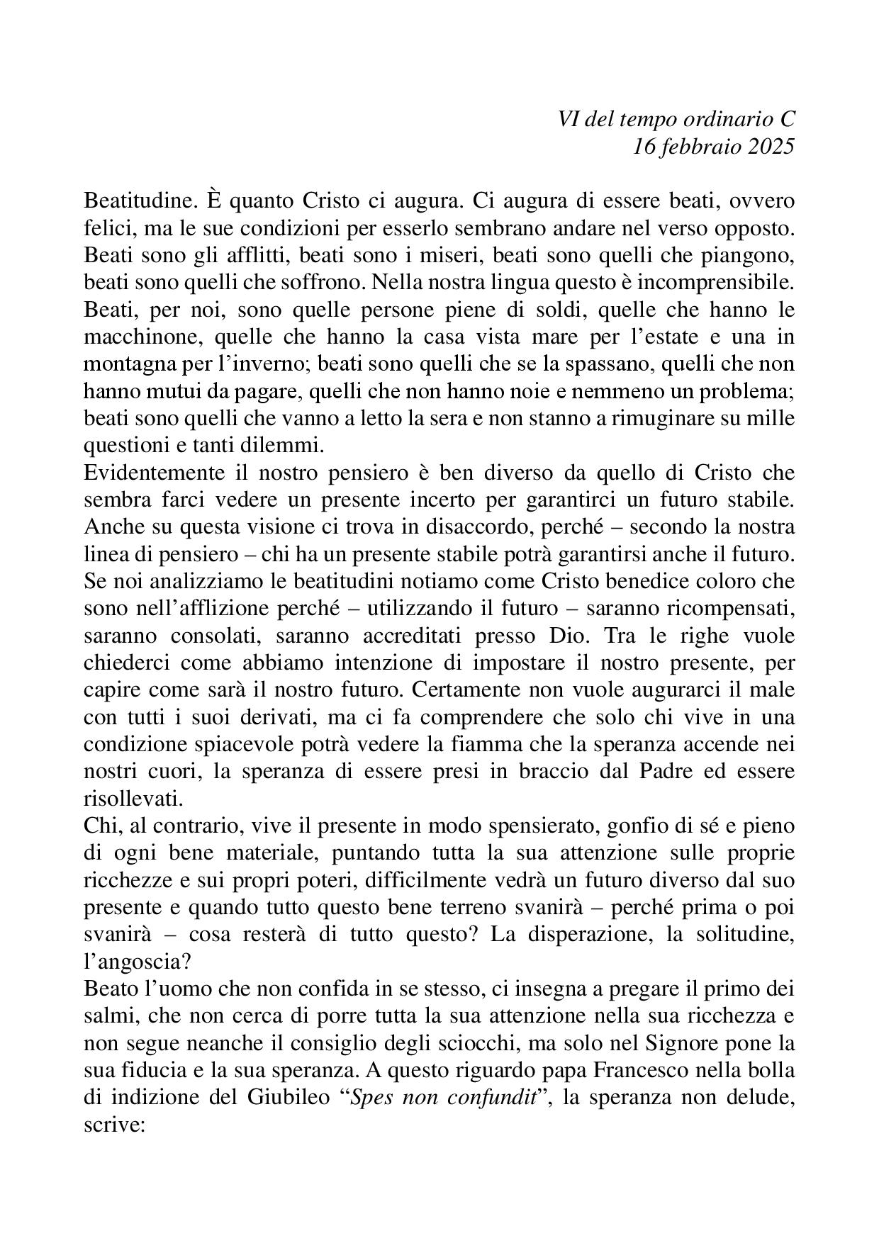 Omelia VI del tempo ordinario C - 16 febbraio 2025