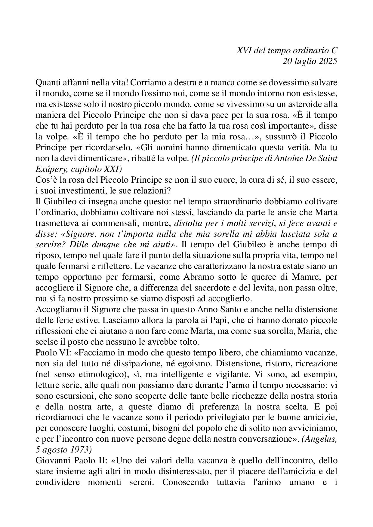 Omelia XVI del tempo ordinario C - 20 luglio 2025