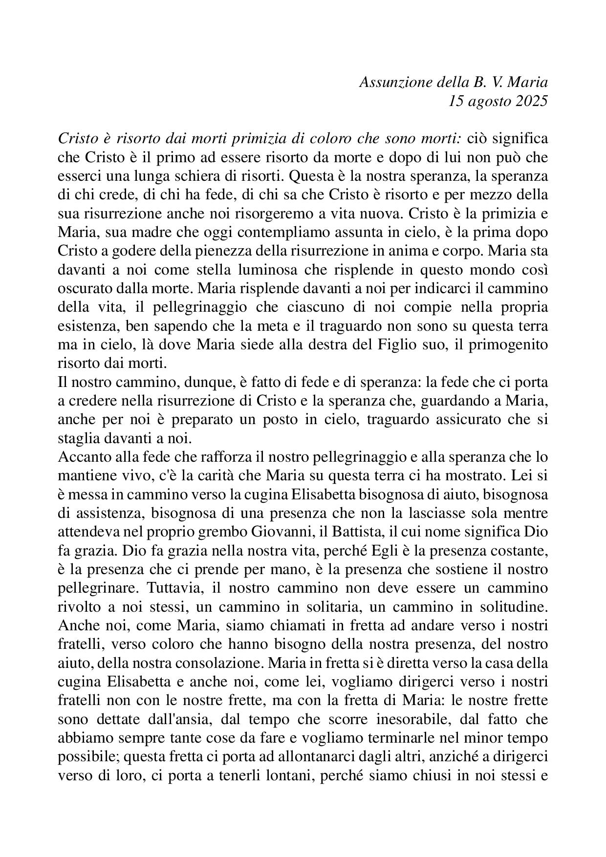 Omelia Assunzione della B. V. Maria - 15 agosto 2025