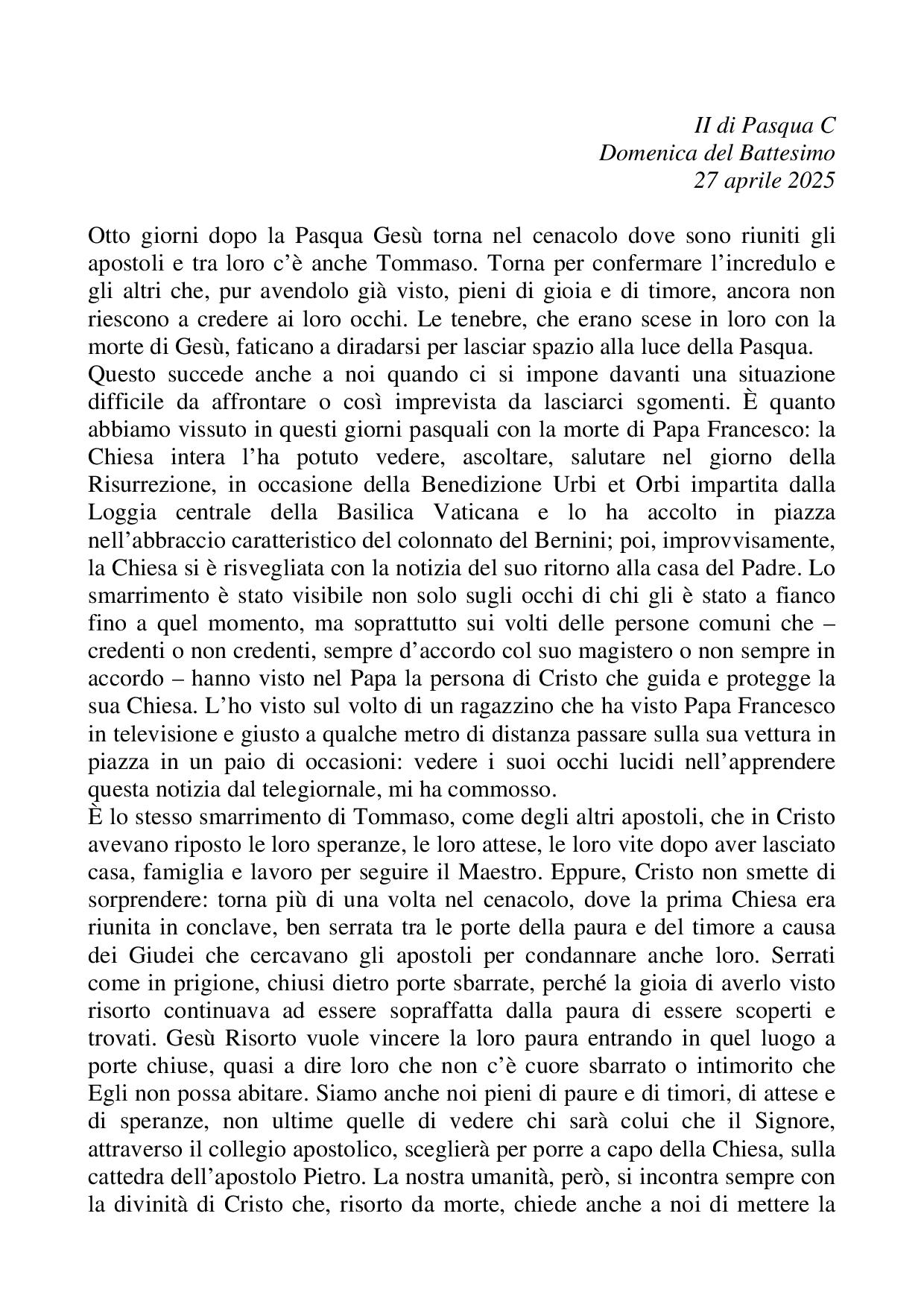 Omelia II di Pasqua C - 27 aprile 2025