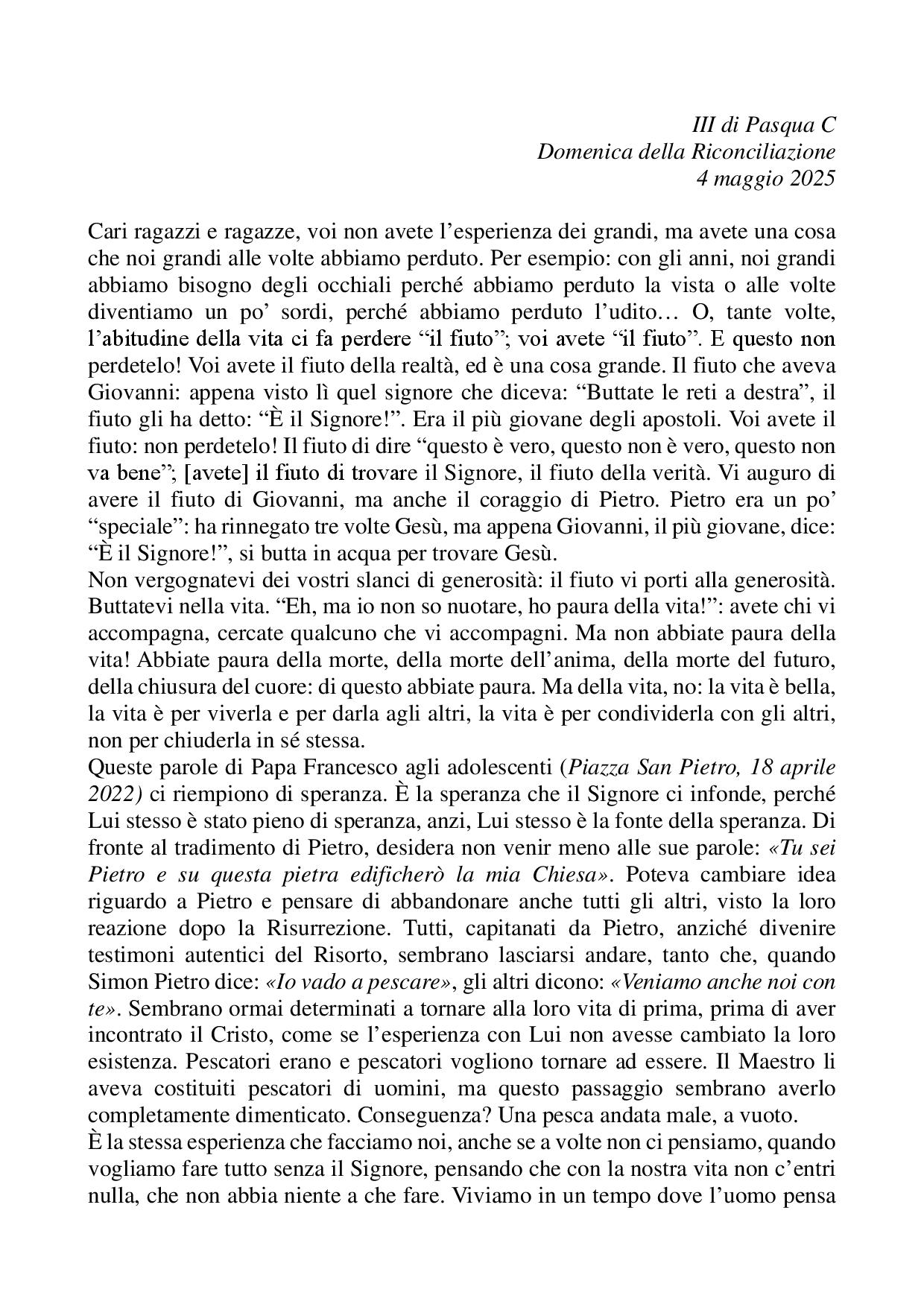 Omelia III di Pasqua C - 04 maggio 2025