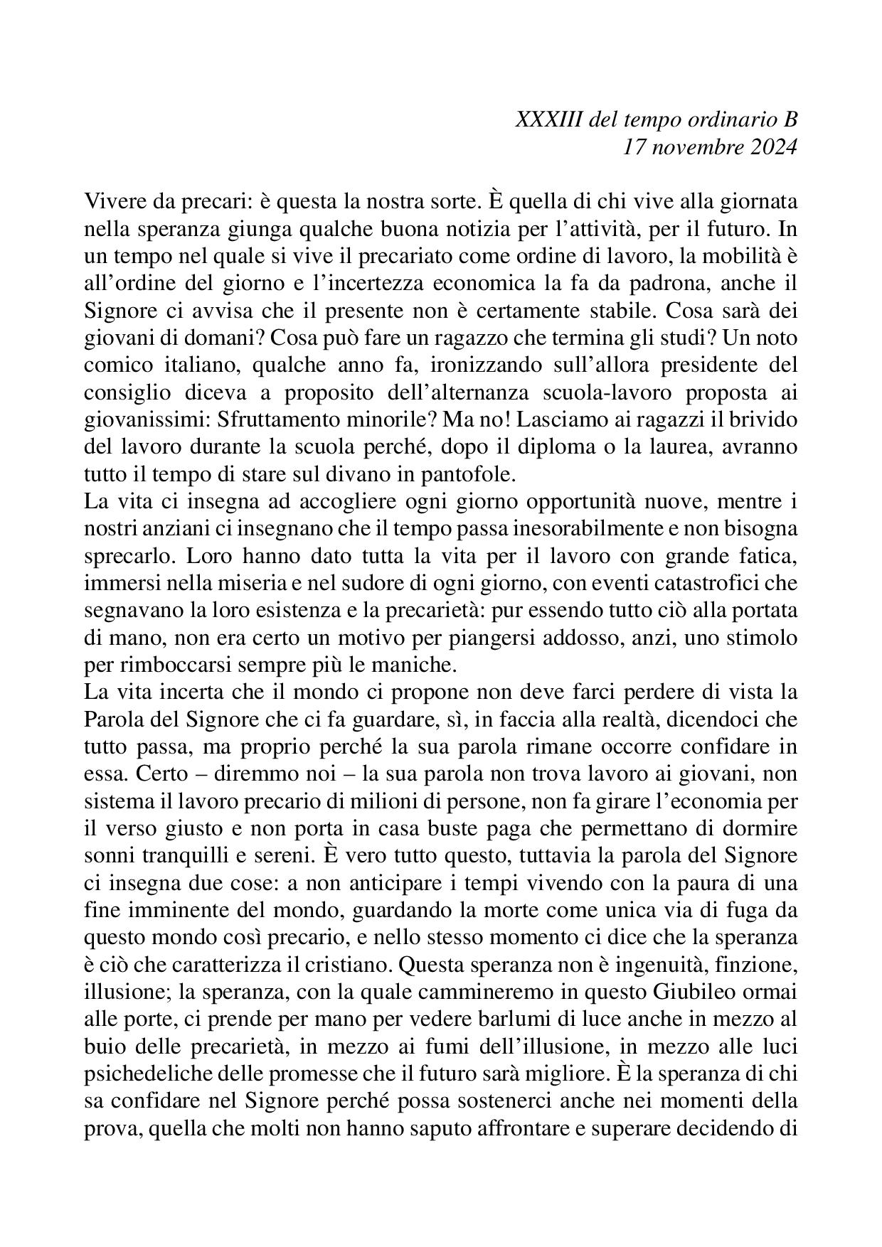 Omelia XXXIII del tempo ordinario B 17 novembre 2024