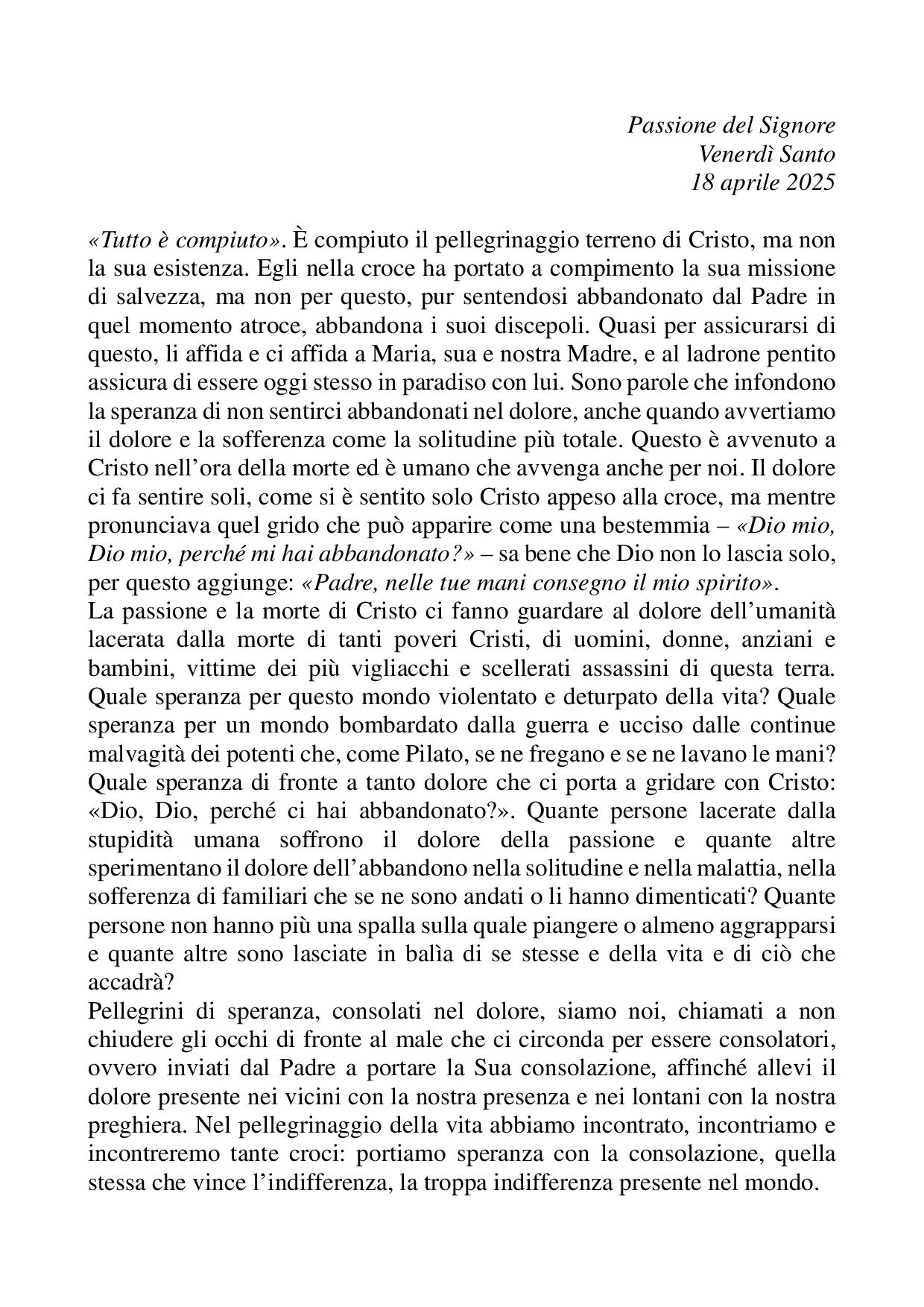 Omelia Passione del Signore - 18 aprile 2025