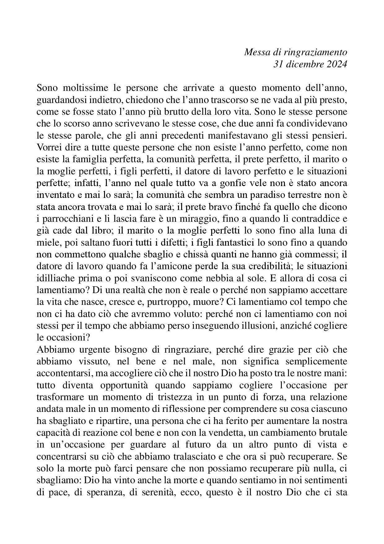 Omelia Messa di ringraziamento - 31 dicembre 2024