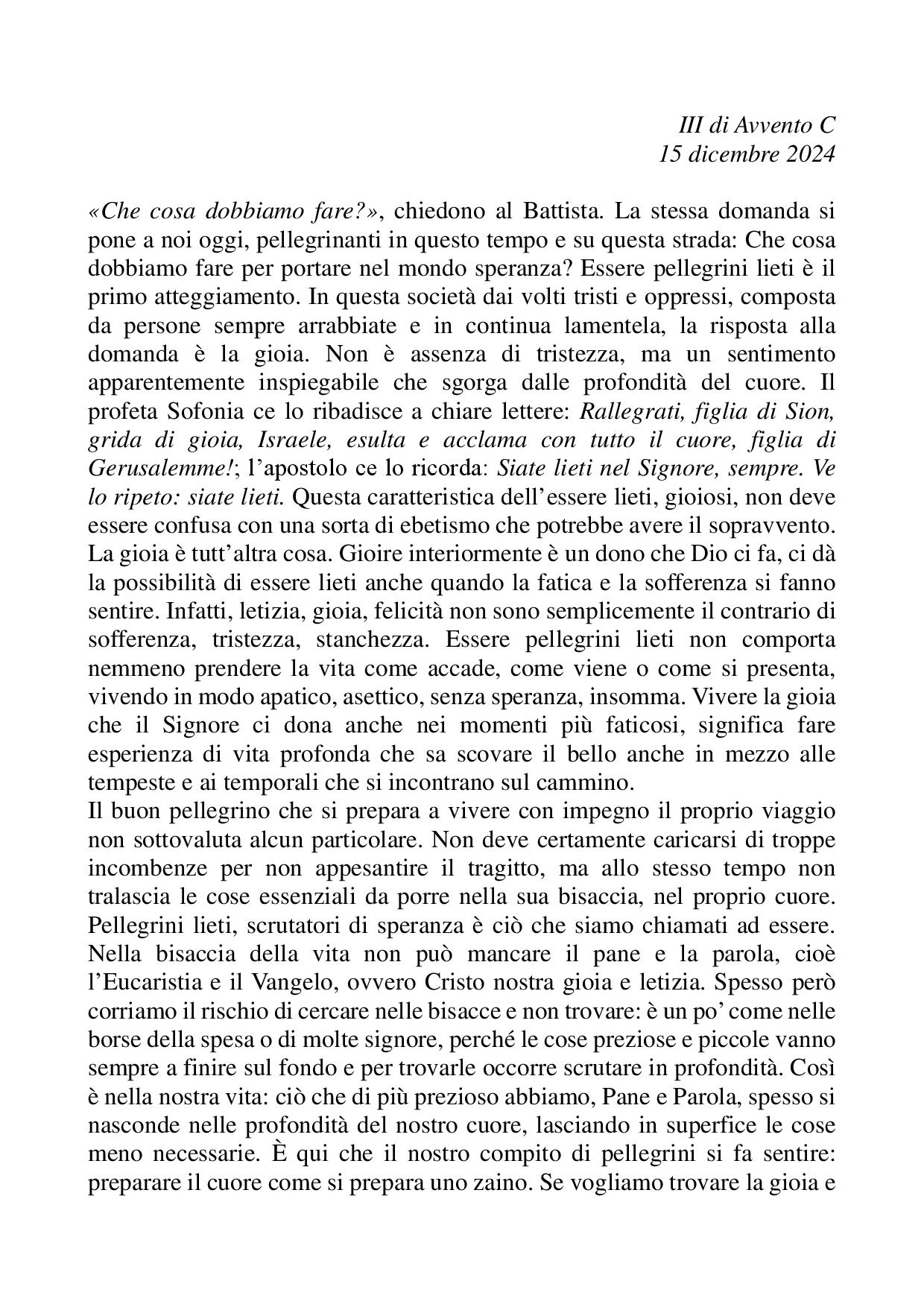 Omelia III di avvento C - 15 dicembre 2024