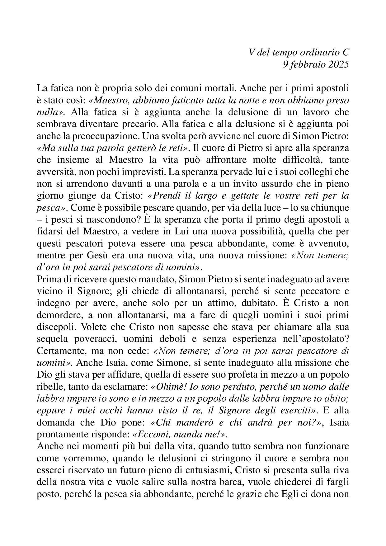 Omelia V del tempo ordinario C - 09 febbraio 2025