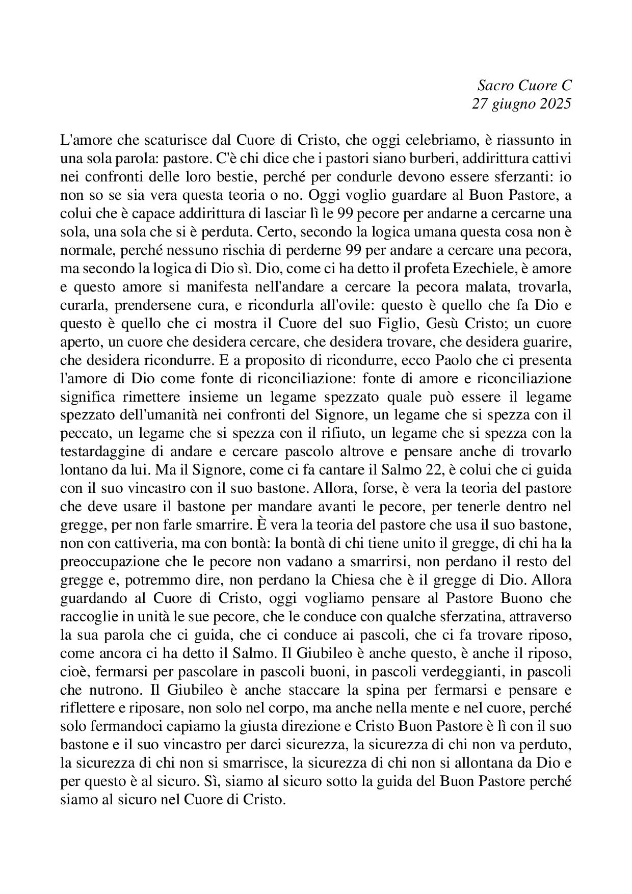Omelia Sacro Cuore C - 27 giugno 2025