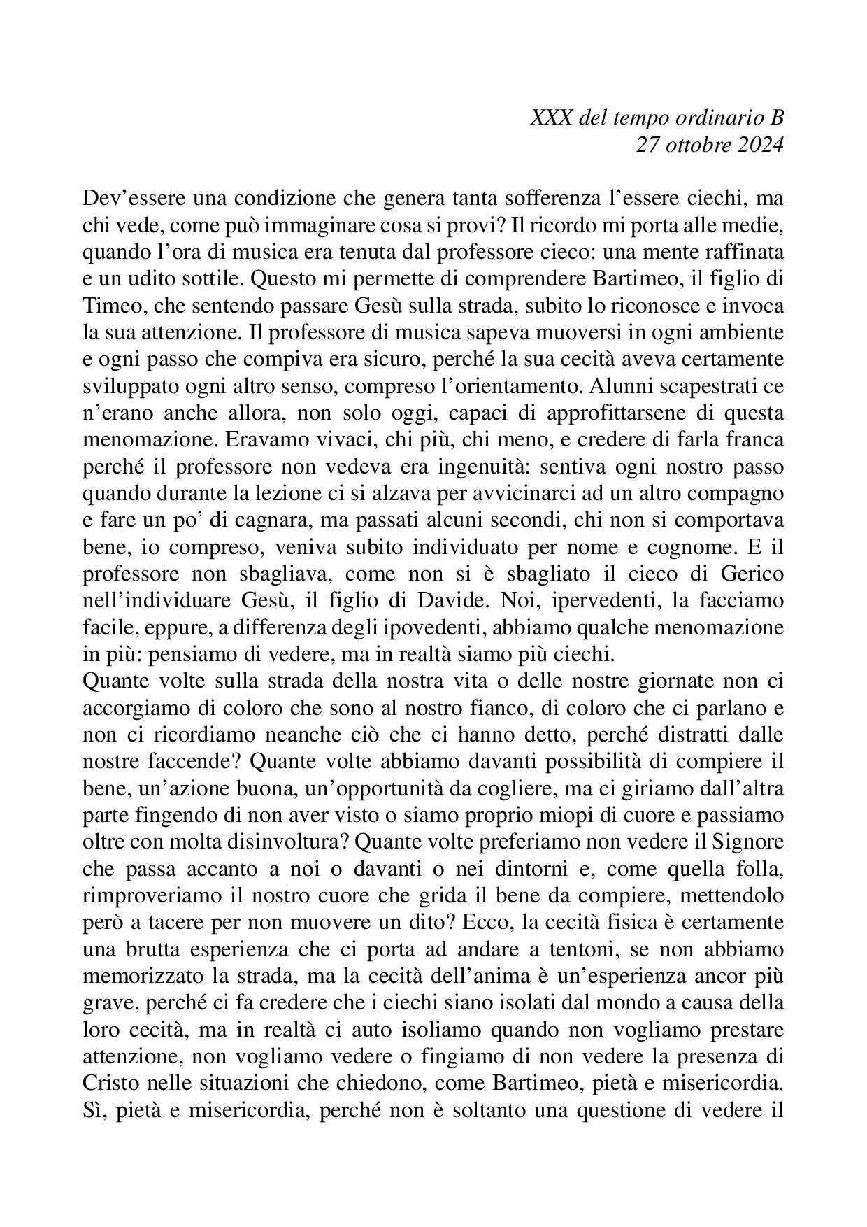 Omelia XXX del tempo ordinario B 27 ottobre 2024