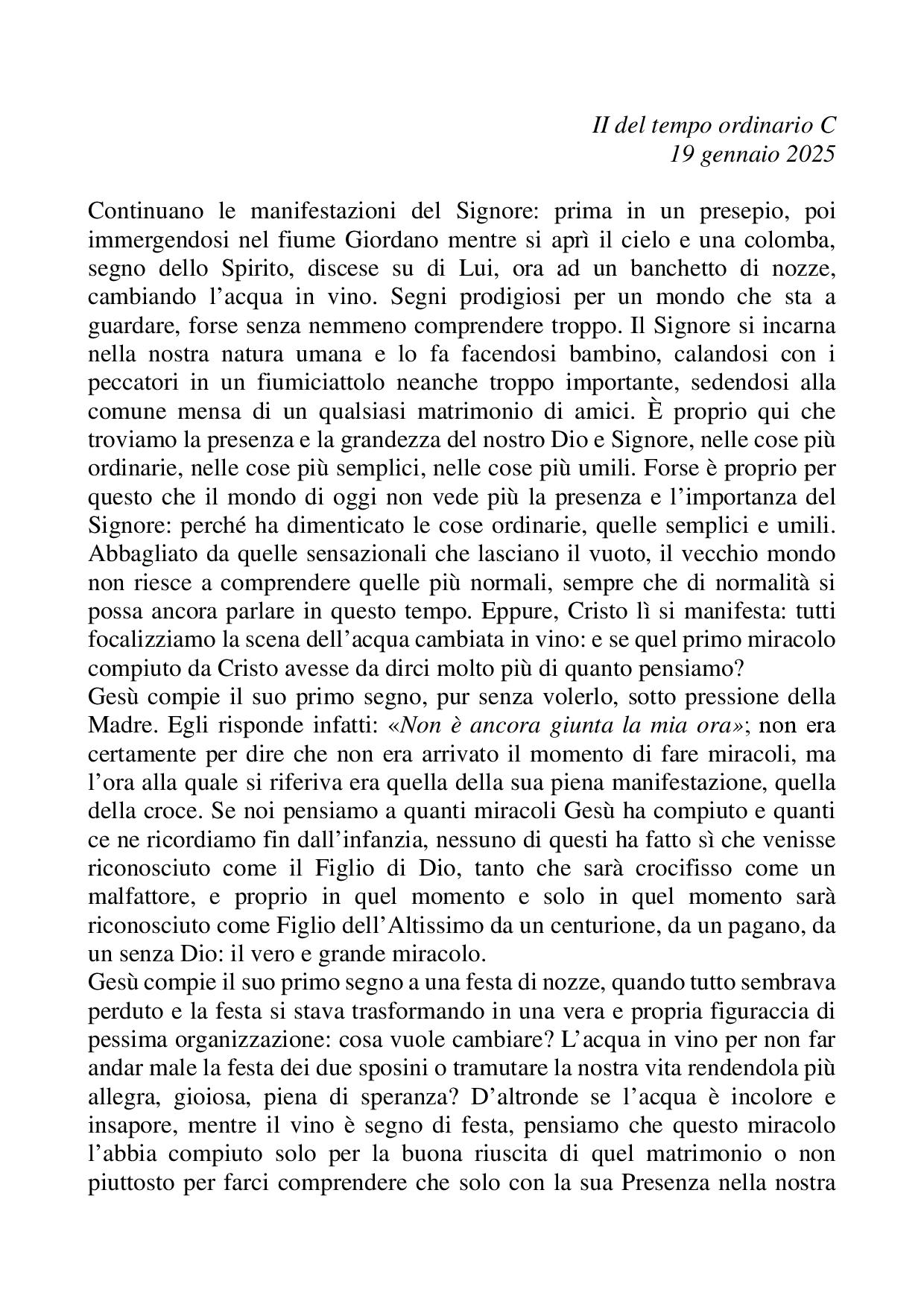 Omelia II del tempo ordinario C - 19 gennaio 2025