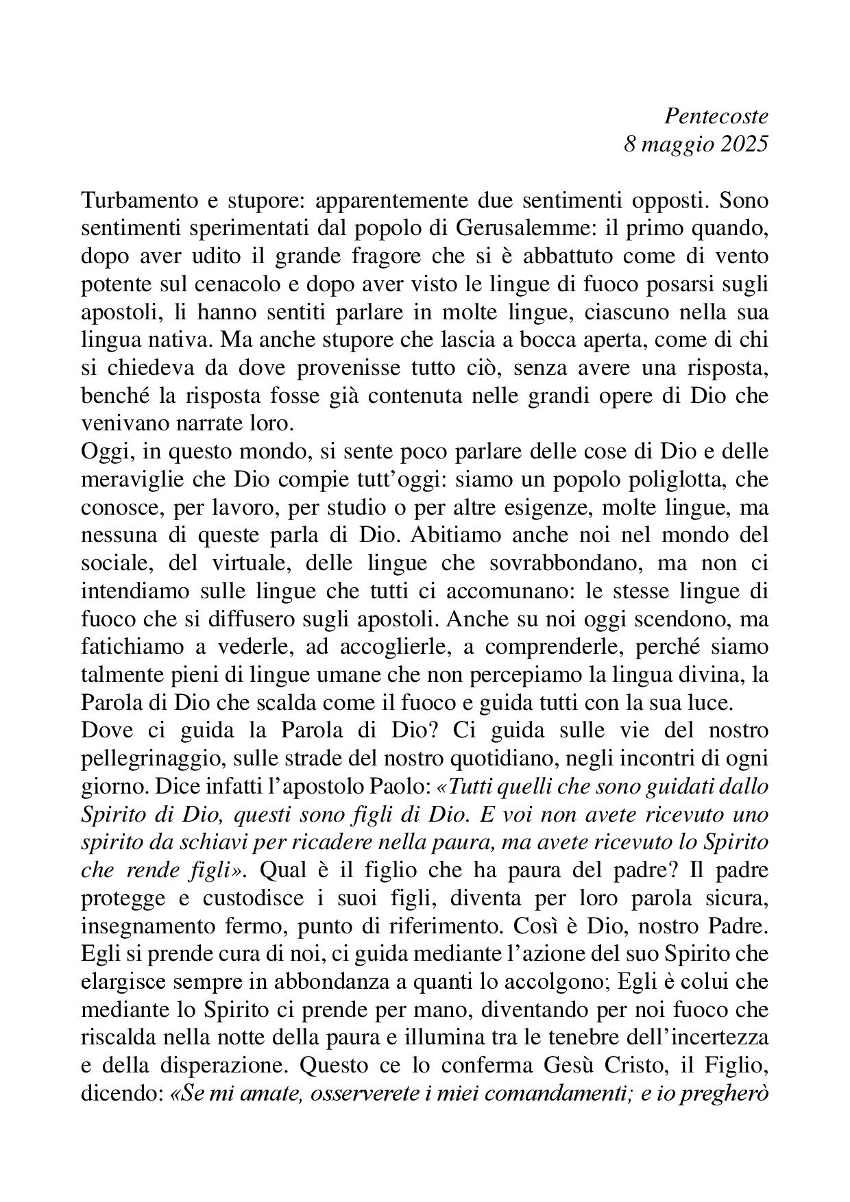 Omelia Pentecoste - 08 giugno 2025