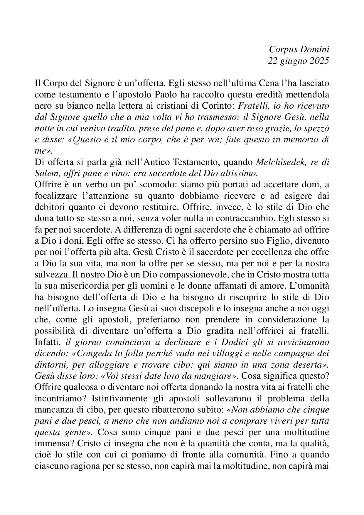 Omelia Corpus Domini - 22 giugno 2025